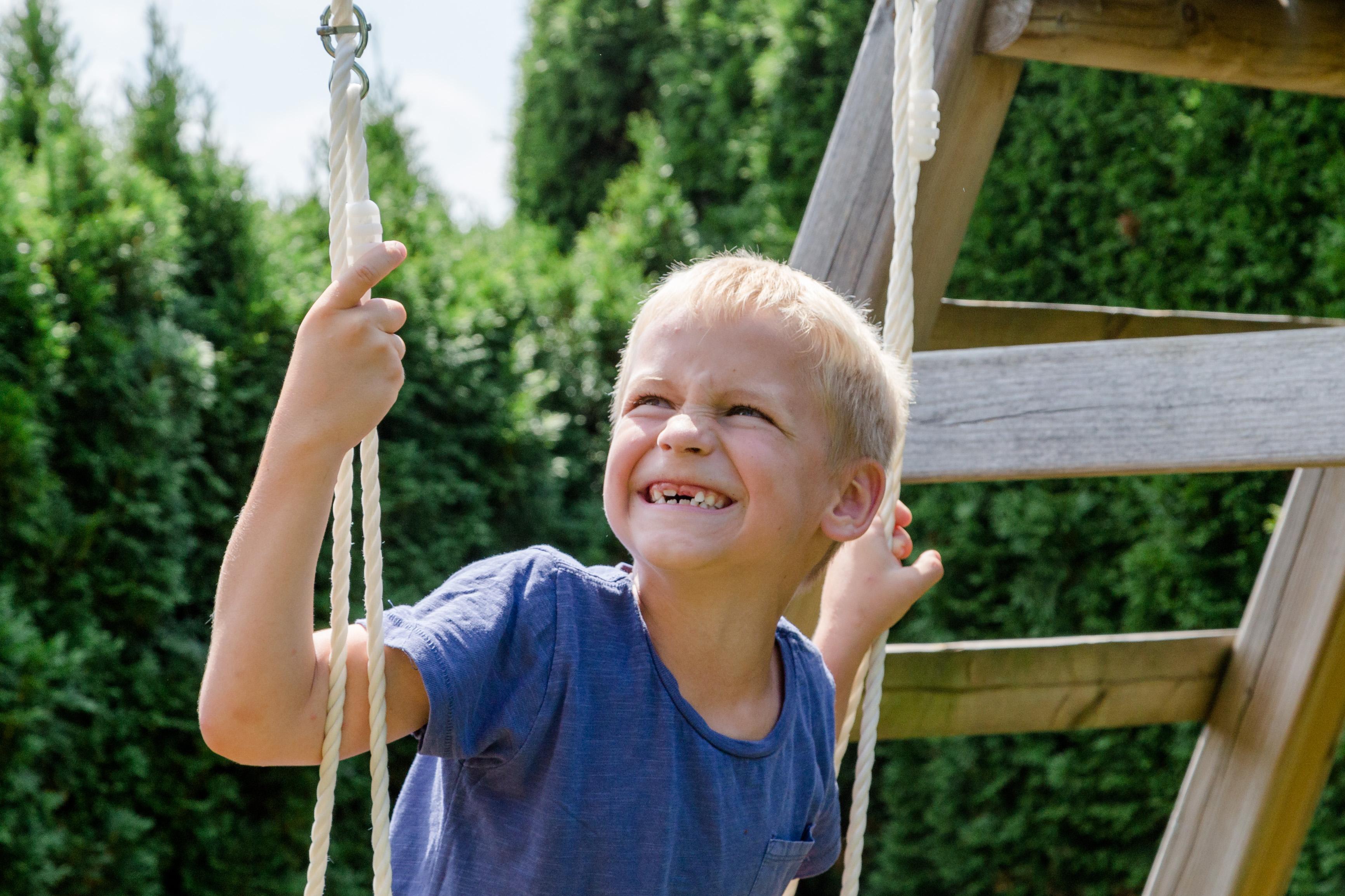 • Spielplatz mit Schaukel, Rutsche und Trampolin für die Kinder
