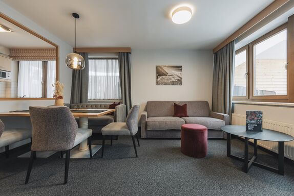 Appartement mit ca. 78 m². Das Appartement verfügt über: 2 Doppelzimmer, 1 Wohnzimmer, Schlafsofa für 2 weitere Personen, 2 Badezimmer (Bad mit integrierter Dusche, WC), 1 Sitzbereich, 1 Küche. Annehmlichkeiten im Appartement sind: