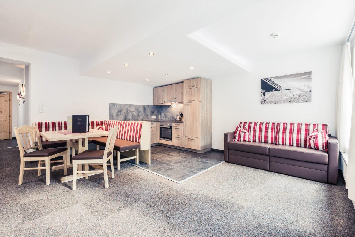 Appartement „Rotkogl“ ist in Richtung Süden ausgerichtet und bietet auf einer Größe von ca. 85 m² Platz für 4-7 Personen. Es verfügt über: 2 Doppelzimmer, 1 Wohn-/Schlafzimmer mit ausziehbarer Schlafcouch, 2 Badezimmer (Badewanne/Dusche, WC), 1 Sitzbereich, 1 Küche. Terrasse, TV, Radio, Wi-Fi, Safe, Staubsauger, Küche Grundausstattung, Handtücher (werden 1x pro Woche gewechselt), Bettwäsche.