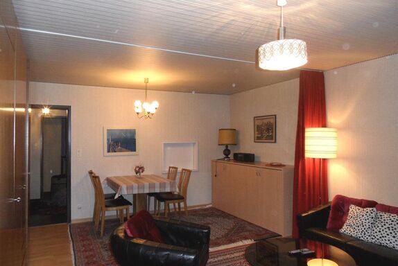 2 1/2 Zimmerwohnungen (ca. 54m 2) im 3. Stock; Mehrfamilienhaus mit Lift; Balkon Südwest; Autoabstellplatz in Garage; Mitbenützung des Skiraumes und der Waschmaschine; Küche mit Backofen, 4-Plattenherd, Kühlschrank mit Tiefgefrierfach, Geschirrspülmaschine; Bad/Dusche/WC; 1 Schlafzimmer mit je 2 normalen Betten und einem Klappbett; Wohnzimmer mit 2 Klappbetten, Polstergruppe, Essecke, Digital-TV, Internet und WLAN; Bettwäsche, Frotteewäsche, Küchentücher, Duvet nordisch, Abfallsäcke blau; Haustiere erlaubt; Nichtraucher-Wohnung!