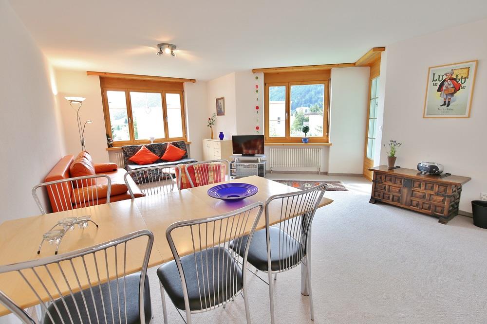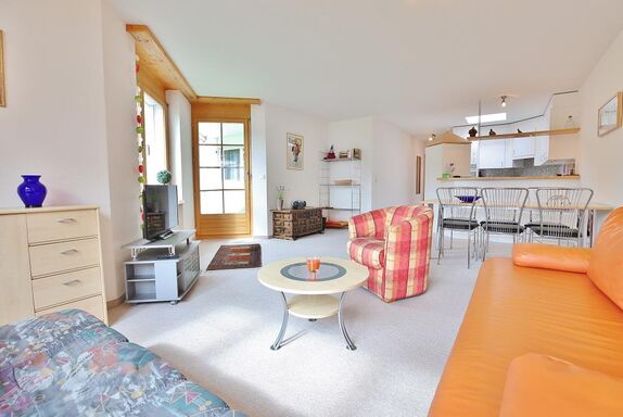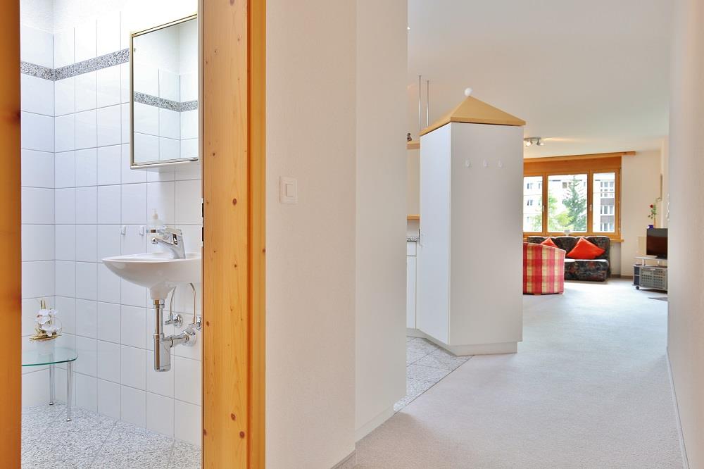3 -Zimmerwohnung Nr. C22, Etage 2, für 4 Personen, ca. 92m2, Balkon; Mitbenützung Waschküche, Skiraum, Aufzug/Lift, Kinderspielplatz ; Parkplatz in Einstellhalle; Wohnraum mit Polstergruppe, Essecke, TV, WLAN; 1 Schlafzimmer mit Doppelbett (2 Matratzen, 180x200 cm), Bad/Dusche/WC, 1 Schlafzimmer mit 2 Einzelbetten; offene Küche mit 4-Plattenherd, Kühlschrank, Tiefkühler, Backofen, Geschirrspüler, Kaffeemaschine; Nichtraucher Wohnung; Haustiere nicht gestattet; Bettwäsche, Frotteewäsche, Küchentücher, Duvet nordisch.