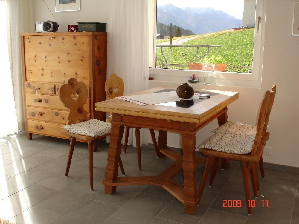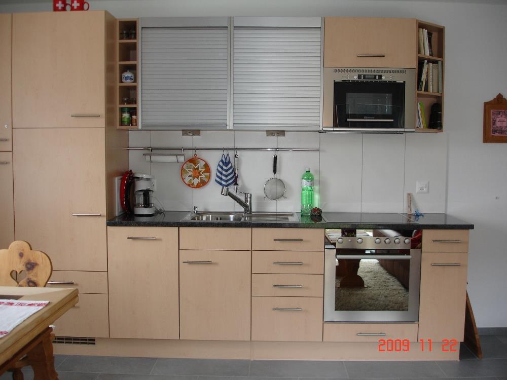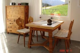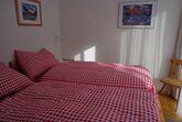 3 Zimmer-Wohnung (ca. 44,4m2) im Untergeschoss; 2 Familienhaus mit 2 Sitzplätzen; gedeckter Autoabstellplatz neben dem Eingang; abschliessbares Gartenhäuschen als Abstellraum; offene Küche mit Backofen, 4-Plattenglaskeramikherd, Kühlschrank mit Tiefkühlabteil, Geschirrspülmaschine, Mikrowellenherd; Dusche/WC; 1 Schlafzimmer mit 2 normalen Betten; 1 Schlafzimmer mit 1 Kajütenbett für 3 Personen; Wohn-Esszimmer mit Sofa; TV, kostenloses WLAN; Abfallsäcke blau; Haustiere nicht erlaubt; Nichtraucherwohnung.