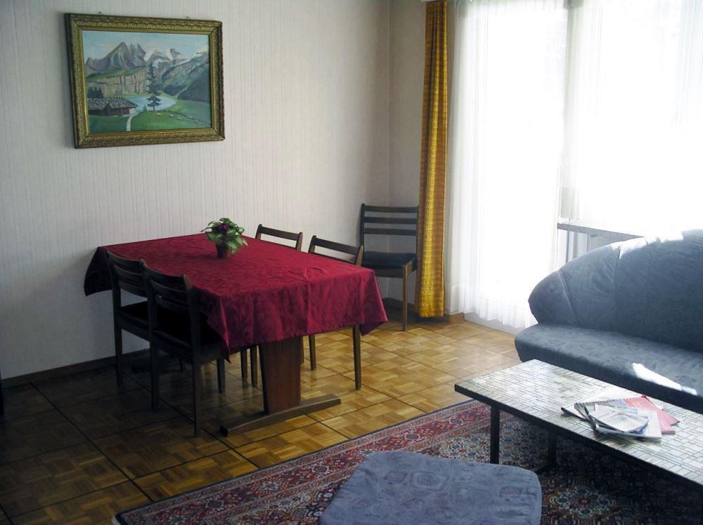 4 ½ Zimmerwohnungen (ca. 84m 2) im 1. Stock; Mehrfamilienhaus mit Lift; Balkon Südwest; Autoabstellplatz in Garage; Mitbenützung des Skiraumes und der Waschmaschine; Küche mit Backofen, Glaskeramikkochfeld, Kühlschrank mit Tiefgefrierfach, Geschirrspülmaschine; Bad mit Lavabo, sep. WC; 3 Schlafzimmer mit je 2 normalen Betten; Wohnzimmer mit 2 Klappbetten, Polstergruppe, Essecke, Digital-TV, Internet und WLAN; Bettwäsche, Frotteewäsche, Küchentücher, Duvet nordisch, Abfallsäcke blau; Haustiere erlaubt; Nichtraucher-Wohnung!
