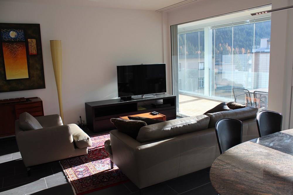 4 ½ Zimmerwohnung (ca. 122 m2) im 3. OG; Mehrfamilienhaus mit Lift, Balkon; Autoabstellplatz in Garage; Mitbenützung des Skiraumes und der Waschmaschine/Tumbler; Küche mit Backofen, 4 Plattenglaskeramikherd, Kühlschrank mit Tiefgefrierfach, Geschirrspülmaschine; Bad/WC, Dusche/WC; 2 Schlafzimmer mit je 1 Doppelbett, 1 Schlafzimmer mit 1 Kajüten Bett; Polstergruppe, Essecke, Bettwäsche, Frottewäsche, Küchentücher, Duvet, Telefon, TV, WLAN, Abfallsäcke blau; Nichtraucher-Wohnung; keine Haustiere erlaubt.
