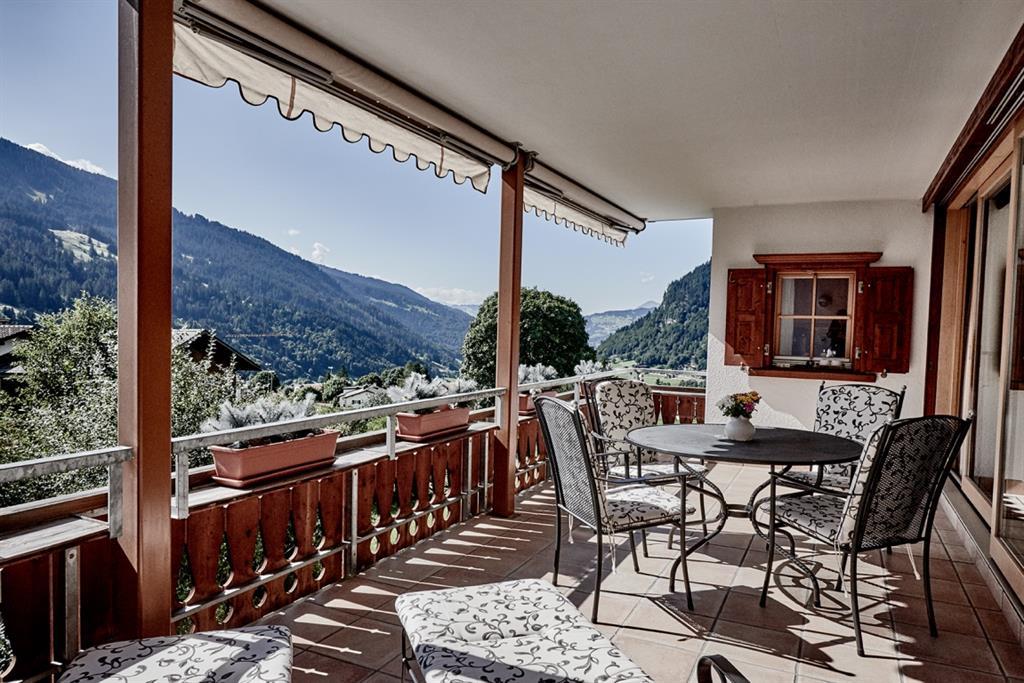 Sehr schöne, sonnige und ruhige 4 ½ Zimmerwohnung für 5 Personen (ca. 120m2) im 3. Stock. Die Wohnung liegt an idyllischer Lage; Terrasse mit herrlicher Sicht auf die Berge und ins Tal; geräumig und sehr komfortabel ausgestattet; Garage; geheizter Skiraum; 1 Schlafzimmer mit 1 Doppelbett; 1 Schlafzimmer mit 1 Französischen Bett, 1 Schlafzimmer mit 2 Einzelbetten; Bad/WC; Dusche/WC; Waschmaschine in der Wohnung; grosses Wohn-/Esszimmer mit Esstisch, Sofaecke, gemütlichem Cheminée, Radio, CD/DVD Player, TV, Internet WLAN; schöne grosse Küche mit Backofen, Geschirrspülmaschine, Kühlschrank, Gefrierfach, Kaffeemaschine; Bettwäsche, Frotteewäsche, Küchentücher; Haustiere nicht erlaubt; Nichtraucherwohnung!
