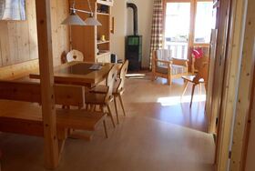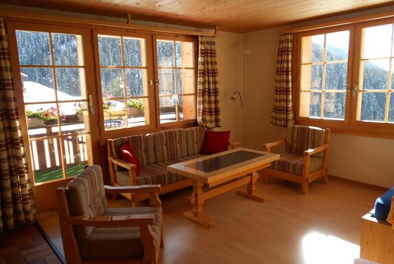 2 1/2 - Zimmer - Ferienwohnung im Parterre; Gartensitzplatz; grosses Schlafzimmer mit Doppelbett; Wohnzimmer mit Essecke und zwei Einzelbetten; neues Bad; Zweckmässige Küche; Mehrfamilienhaus an ruhiger Lage mit herrlicher Aussicht; Waschmaschine zur Benützung im Haus; W-LAN und Sat. TV; Kinderbett und Zusatzbett vorhanden; Nichtraucherwohnung; Haustiere erlaubt.