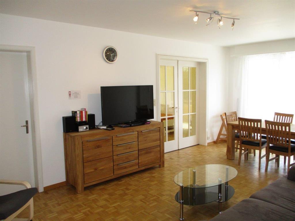 4 Zimmerwohnung (ca. 84 m2) im 2. Stock, Mehrfamilienhaus mit Lift, Balkon mit Aussicht auf die Berge, Autoabstellplatz hinter dem Haus, Mitbenützung des Skiraums, der Waschmaschine und des Trockenraumes. Küche mit, Backofen, 4-Plattenglaskeramikherd, Kühlschrank mit Tiefgefrierfach, Mikrowelle, Racletofen, Fondueset; Bad/WC; Dusche/WC; grosses Schlafzimmer mit 3 Einzelbetten und 2 Zusatzbetten; 2 Schlafzimmer mit je 2 Einzelbetten, Wohnzimmer mit Essecke, Sofa, Stereo, TV, DVD Player, WLAN; Kinderfreundlich; Bettwäsche, Frotteewäsche, Küchentücher, Duvet nordisch; Abfallsäcke blau. Haustiere nicht erlaubt. Nichtraucher-Wohnung!