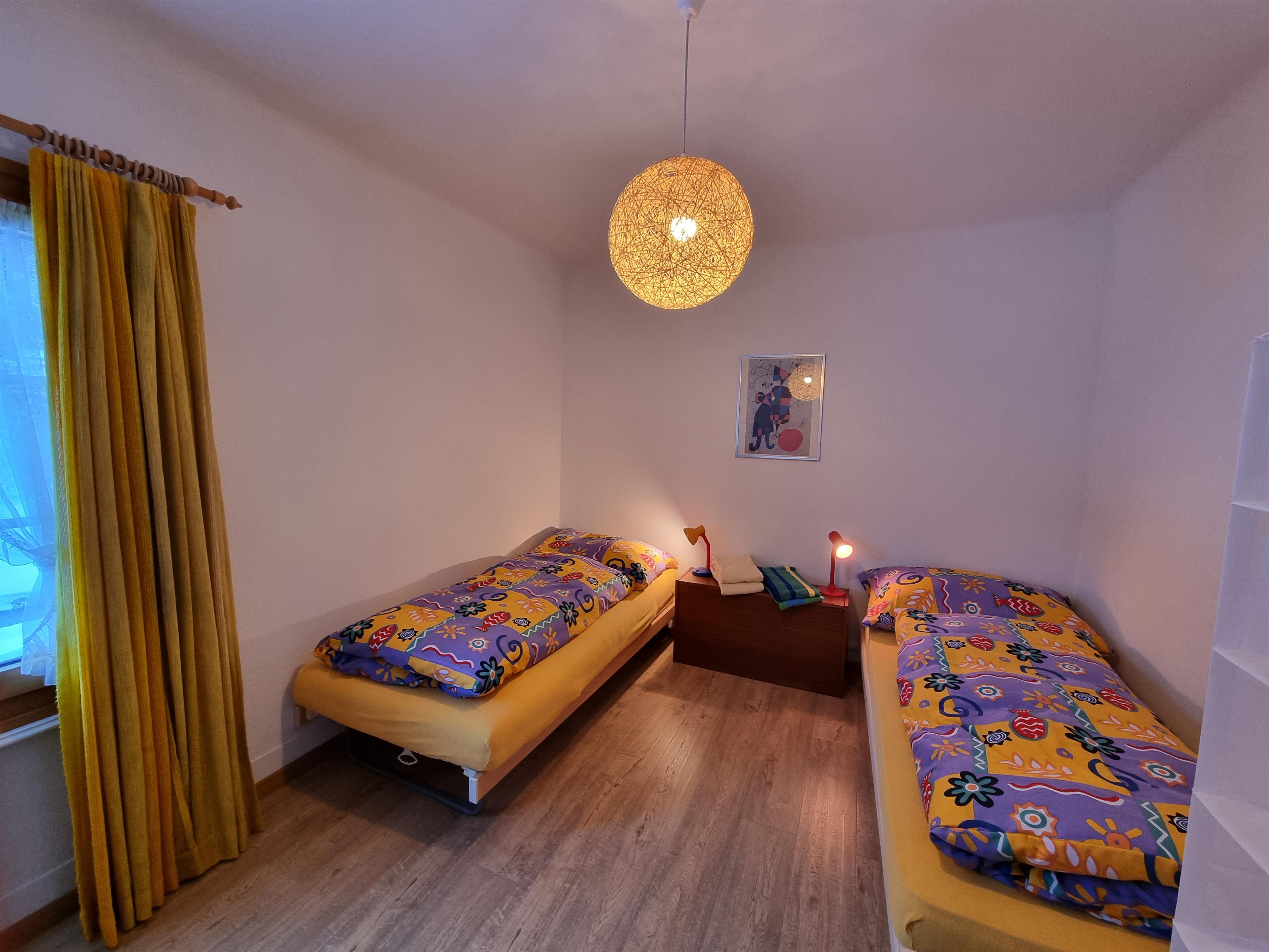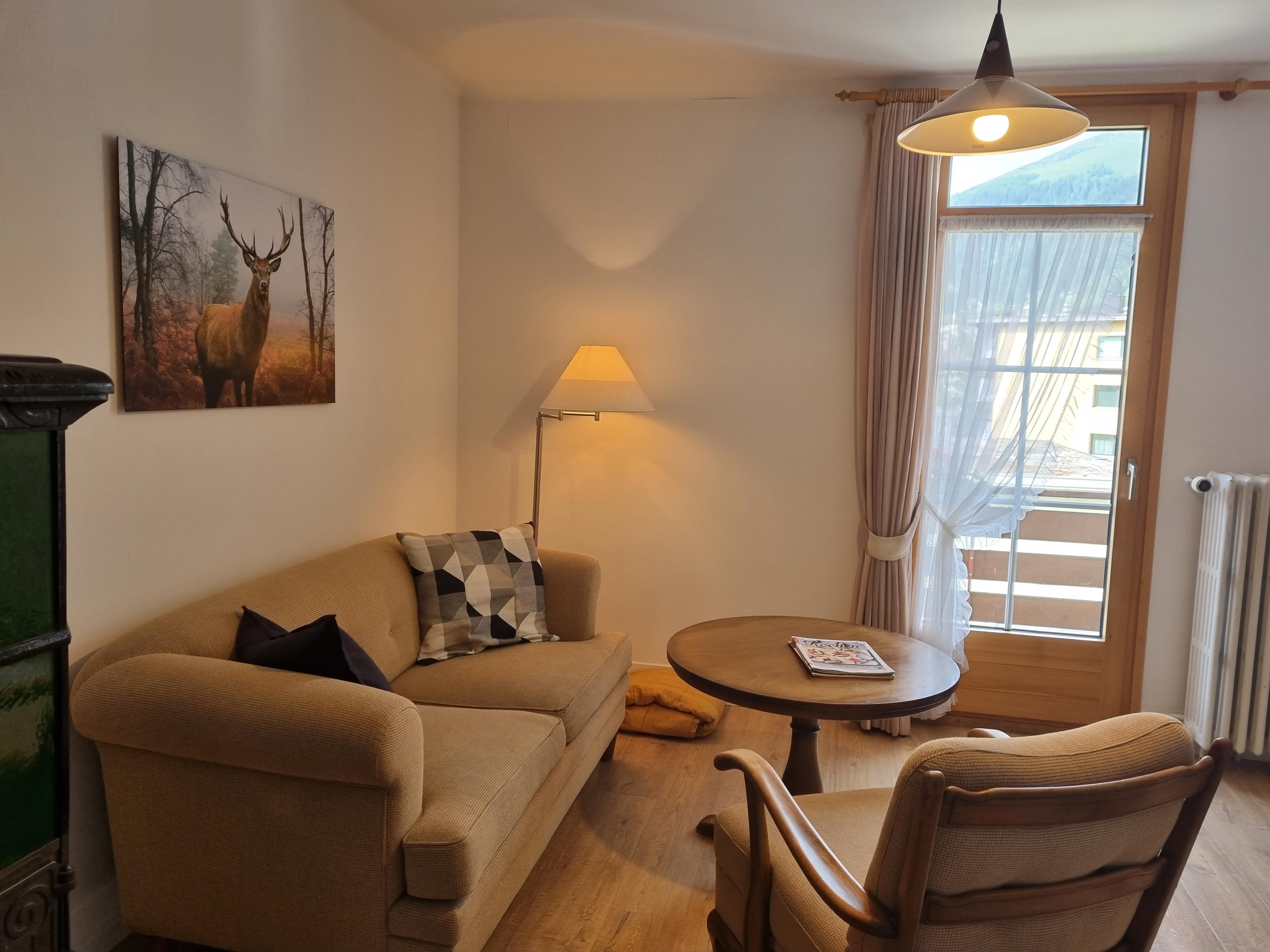 3.5-Zimmerwohnung (66 m2) im 2. Stock; zentrale Lage nahe Eisstadion, Jakobshorn und Hallenbad/Wellness eau-là-là; sehr sonniger Südbalkon mit Tisch und Sitzbank/Stuhl; Aussenparkplatz; Skiraum; Mitbenützung der Waschküche nach Absprache; Küche (neu 2023) mit 4 Glaskeramik-Kochfeldern, Geschirrspühlmaschine, Backofen, Kühlschrank mit Gefrierfach, Vorratsraum/Spense inkl. Putzschrank, Nespresso-Kaffeemaschine, Wasserkocher und Fondue-Set; Bad/WC mit Badewanne, Frotteewäsche inkl.; Schlafzimmer mit Doppelbett; Schlafzimmer mit 2 Einzelbetten; Kinderbett auf Wunsch verfügbar; Bettwäsche inkl.; Wohnzimmer mit TV, WLAN, Sofa, Sessel, Hocker; Haustiere und Rauchen nicht erlaubt.