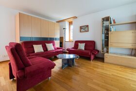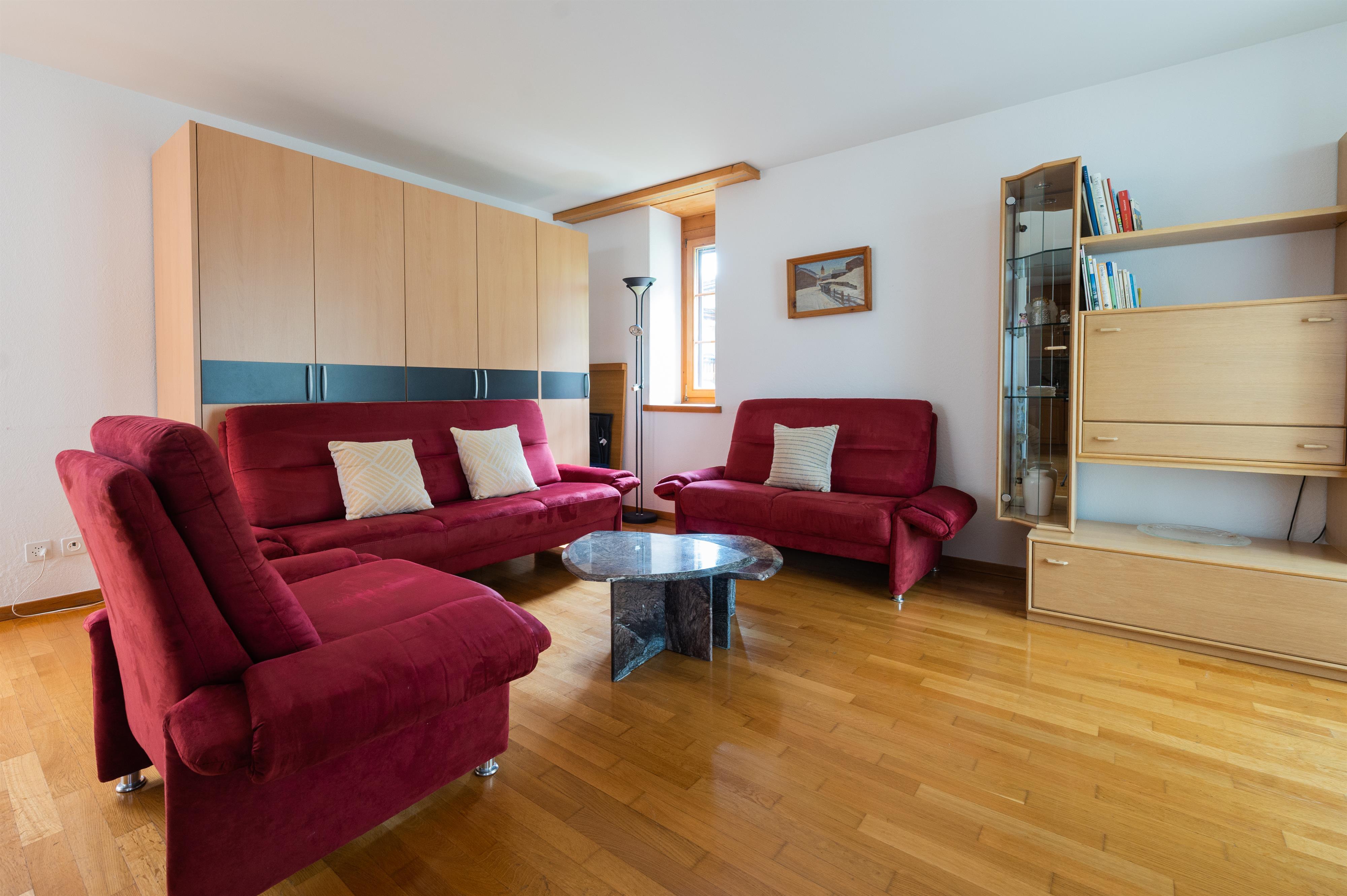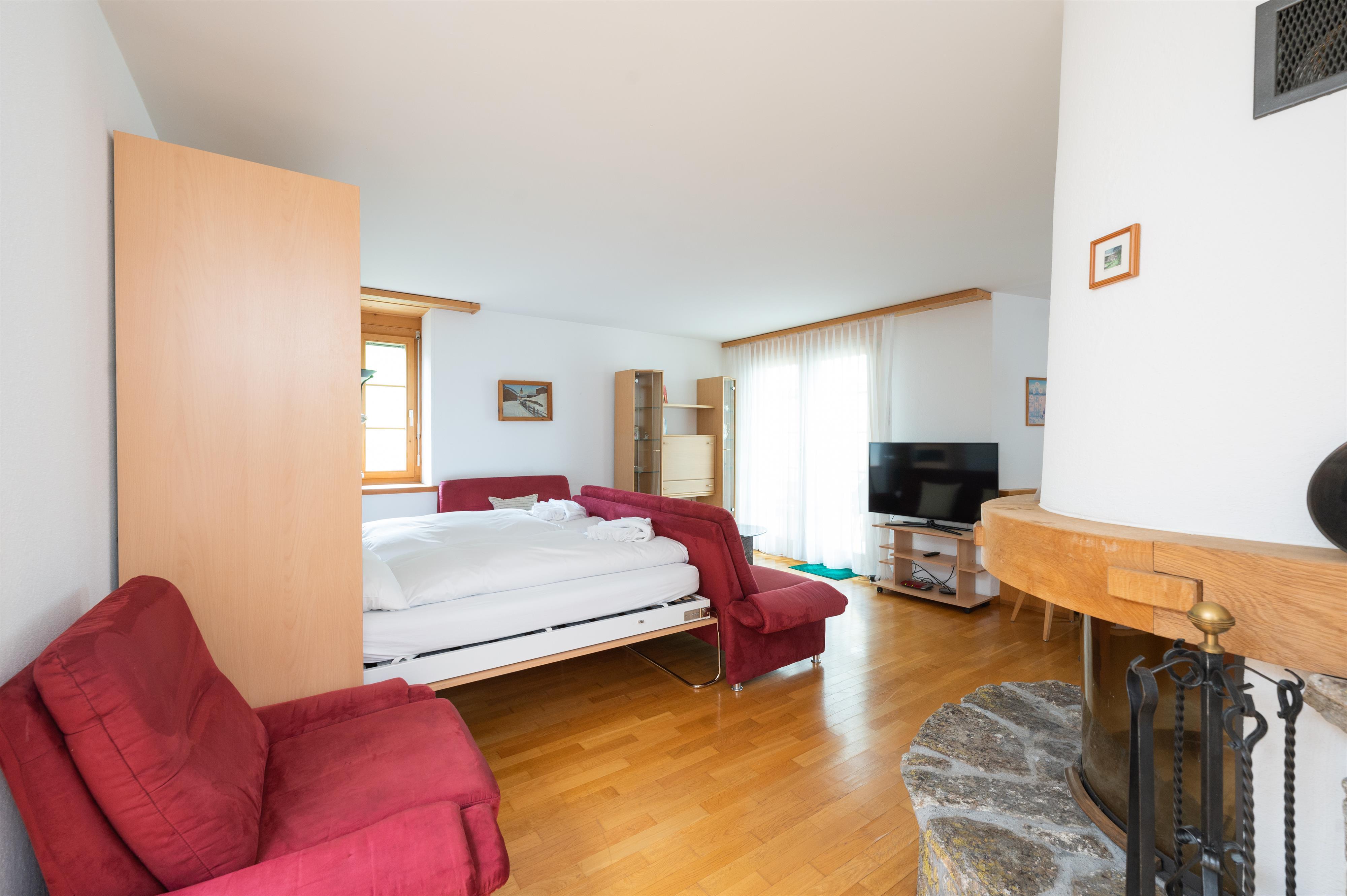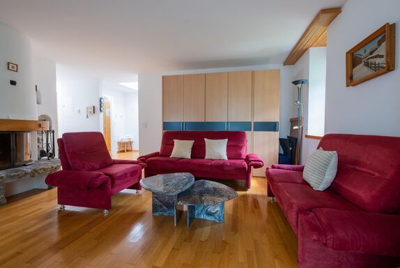 3 ½ Zimmerwohnungen (ca. 106m 2) im 3. Stock kein Lift; die Wohnung liegt direkt am Pistenrand, man kann vom Skigebiet dirket mit den Skis/Snowboard zur Wohnung fahren; Mehrfamilienhaus; Wintergarten und Balkon Südwest; Garage 1 Auto plus Platz für 1 Auto vor der Garage; Mitbenützung des Skiraumes, Waschmaschine mit Tumbler (Kombigerät); geeignet für Homeoffice mit Stehpult; Küche mit Backofen, Glaskeramik-Herd, Kühlschrank mit Tiefgefrierfach, Geschirrspülmaschine; Bad (Jacuzzi)/WC, Dusche/WC; 2 Schlafzimmer mit 2 Doppelbetten (2x90cm); Wohnzimmer mit 2 Klappbetten, Polstergruppe, Essecke, Cheminée; Bettwäsche, Frotteewäsche, Küchentücher, Duvet nordisch; Digital-TV, Internet mit WLAN; Abfallsäcke blau; Haustiere nicht erlaubt; Nichtraucher-Wohnung! Ideal für Familien mit Kinder ab 4 Jahren.