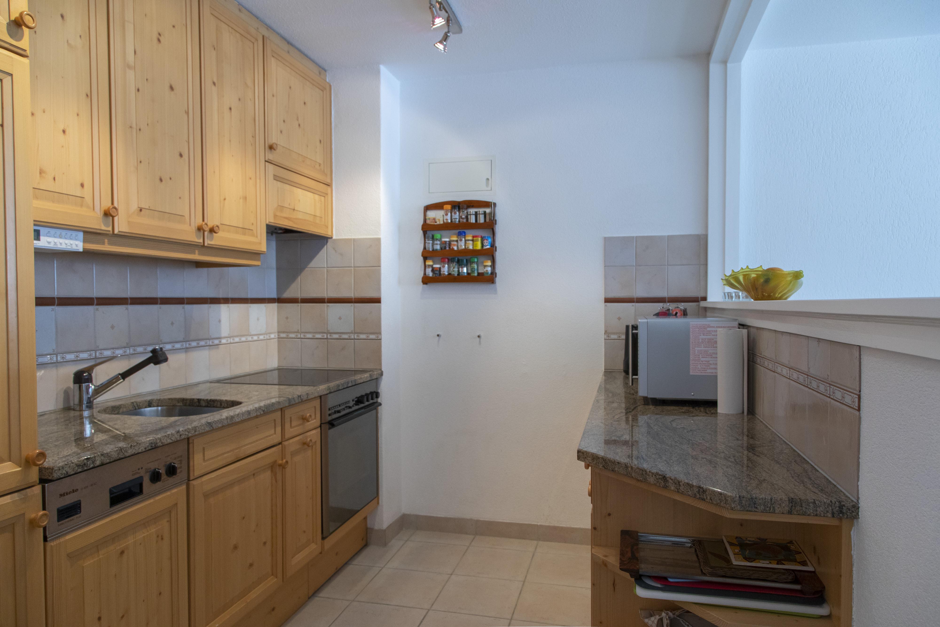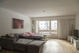 Sehr grosse 2 ½ Zimmerwohnung (ca. 75m2) im 2. Stock eines Mehrfamilienhaus mit Lift; grossem Südbalkon; Tiefgarage; eigener Skiraum; Abstellplatz für Fahrräder/Kinderwagen; Mitbenützung der Waschmaschine, Kinderspielplatz und das Hallenbad; Küche mit Backofen, Kühlschrank mit Tiefgefrierfach, Mikrowelle, Geschirrspülmaschine, Kaffemaschine; Dusche/WC, separates WC; Schlafzimmer mit 2 Einzelbetten; Wohnzimmer mit sehr komfortablem Bettsofa (160/200), Essecke, TV, Telefon, WLAN; Bettwäsche, Frottewäsche, Küchentücher; Haustiere sind nicht erlaubt; Nichtraucherwohnung!