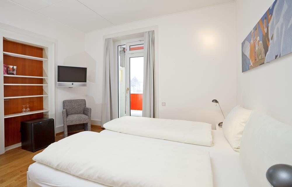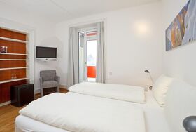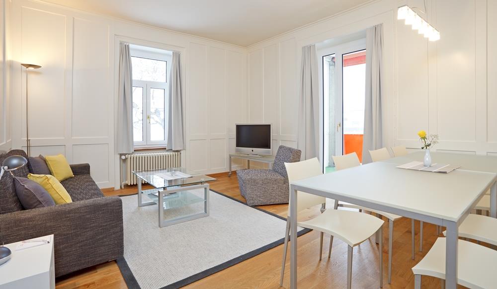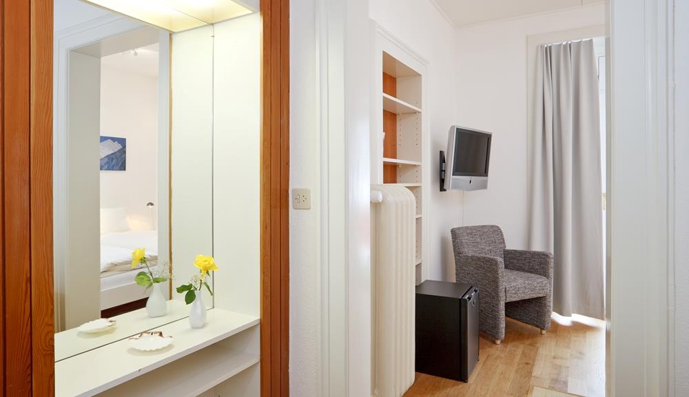 Helle, komfortable 3.5 Zimmerwohnung (86m2) im 1. Stock des Hotel National; separater Eingang über Treppe; sehr zentral und doch ruhig gelegen; Mitbenützung des Ski- und Veloraumes vom Hotel, Waschmaschine im Hotel (Wäscheservice); 2 Schlafzimmer mit je 2 normalen Betten (90x200cm); 1 Bad/WC, 1 Dusche/WC; Wohn-Esszimmer mit ausziehbarem Bettsofa; Südbalkon; separate Küche mit Kühlschrank und Tiefkühlfächer, Kombibackofen, Glaskeramikherd (4 Platten), Geschirrspülmaschine; in allen Zimmern Parkett, Küche und Bäder Plattenboden. Bettwäsche, Frotteewäsche, Küchentücher, Duvet nordisch, auf Wunsch Schweizer Bett (Wolldecke/Leintuch); 3 Flachbildfernseher (beide Schlafzimmer & Wohnstube), 1 DVD/CD Player, Radio, Telefon, WLAN in der ganzen Wohnung kostenlos; Nichtraucherwohnung; Haustiere nicht erlaubt! Saunalandschaft des Hotels (15.00-20.00 Uhr) kann zu Hotelöffnungszeiten kostenlos mitbenutzt werden.