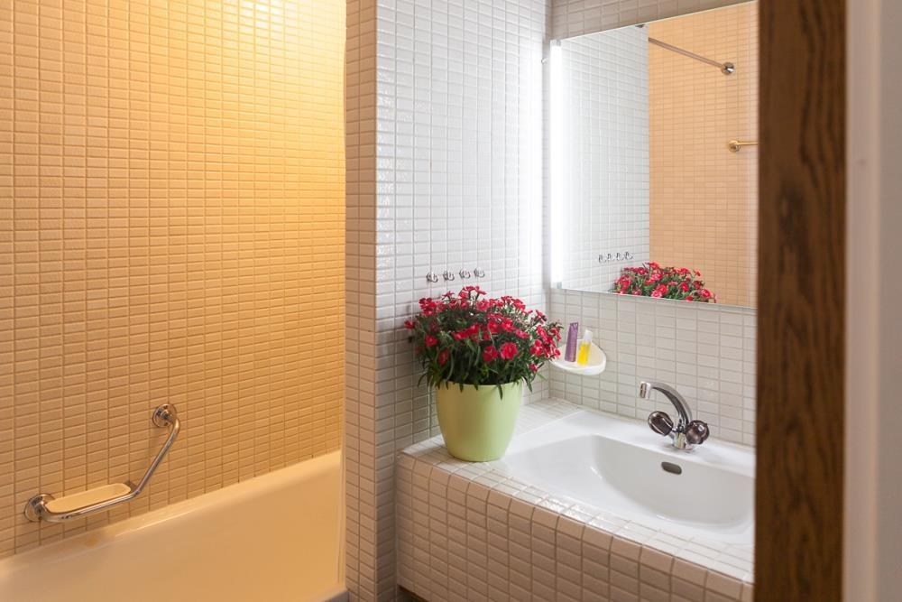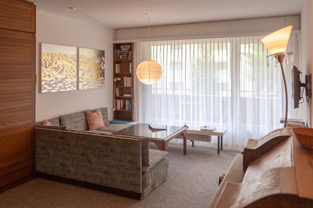 2-Zimmerwohnung Nr. 42, Etage 1, für 4-5 Personen, ca. 50m², Balkon Süd/West. Parkplatz Nr. 42 in Einstellhalle. Wohnraum mit Polstergruppe, kleiner Esstisch (80x80cm), 1 Klappbett (140cm breit), TV, WLAN, die neusten Audio-Wiedergaben DAB+, Spotify, Streming, Bluethooth und vieles mehr sind möglich; 1 Schlafzimmer (½ Etage höher) mit Doppelbett (2 Matratzen), 1 Etagenbett; offene Küche mit Bartheke, 3-Plattenherd, Kühlschrank, Tiefgefrierfach, Backofen, Geschirrspüler. Bad/Dusche, sep. WC. Haustiere nicht gestattet. Für kleinere Besorgungen steht ein Fahrrad zur Verfügung. Hallenbad gratis für Gäste Öffnungszeiten: Montag - Freitag 07:00-21:00Uhr, Sonn-und Feiertag 8:00-21:00Uhr, Kinder unter Beaufsichtigung der Eltern bis 20Uhr; Sauna gegen Gebühr CHF 25.00 pro Saunagang.