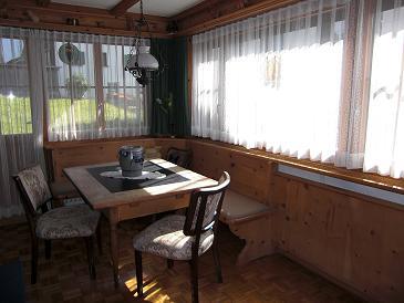 3.5 Zimmerwohnung (85m2), 1966 erbauten Haus befindet, an bester Lage. Nach Süden ausgerichtete Parterre-Wohnung, besteht aus einer Arvenholzstube mit Balkon, 1 Doppelschlafzimmer, 1 3-Betten-Zimmer mit Lavabo, 1 Wohnküche mit Speisekammer, Nespresso-Kapselkaffeemaschine, Filterkaffeemaschine, Geschirrspüler; 1 Bad mit Toilette sowie grossem Entrée. Kabelfernseher, Skiraum und bei Bedarf Waschmaschine. Parkplatz beim Haus. Betten-, Küchen- und Frotteewäsche sind vorhanden; WLAN; Haustiere nur auf Anfrage!