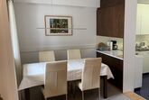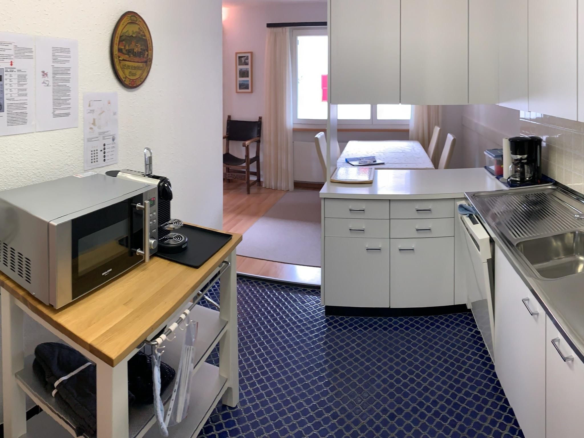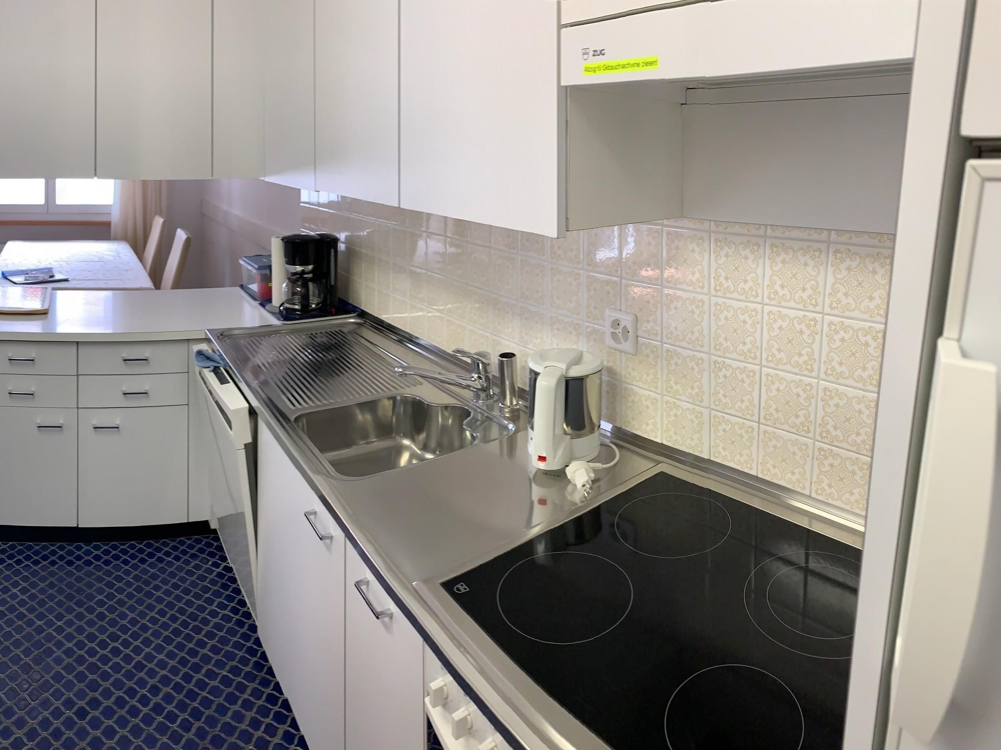 Die angrenzende Küche ist komplett ausgestattet und bietet Ihnen die Möglichkeit, einen Backofen, ein 4-Platten-Cerankochfeld, einen Geschirrspüler, einen Kühlschrank mit Gefrierfach, eine Kaffeemaschine, eine Kapsel-Kaffeemaschine, einen Wasserkocher und eine Mikrowelle zu nutzen. Die beiden Schlafzimmer verfügen jeweils über einen geräumigen Kleiderschrank. Ein Schlafzimmer ist mit einem komfortablen Doppelbett und einer praktischen Kommode ausgestattet, während das zweite Schlafzimmer zwei Einzelbetten und einen Schreibtisch bietet. Das hochwertige Badezimmer verfügt über eine Dusche, ein Waschbecken und ein WC. Zusätzlich steht ein separates WC mit Waschbecken zur Verfügung. Zu den Annehmlichkeiten des Hauses gehören ein beheizter Skiraum sowie eine Waschmaschine und ein Trockner im Keller, die von unseren Gästen genutzt werden können. Bitte beachten Sie, dass unsere Wohnung eine Nichtraucherunterkunft ist und Haustiere nicht gestattet sind. Der Kamin ist nicht nutzbar. Entdecken Sie den Komfort und die Gemütlichkeit unserer Ferienwohnung und genießen Sie einen unvergesslichen Aufenthalt in Klosters Dorf!