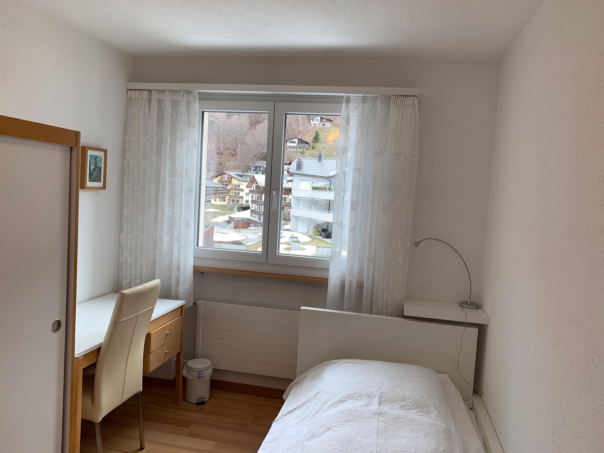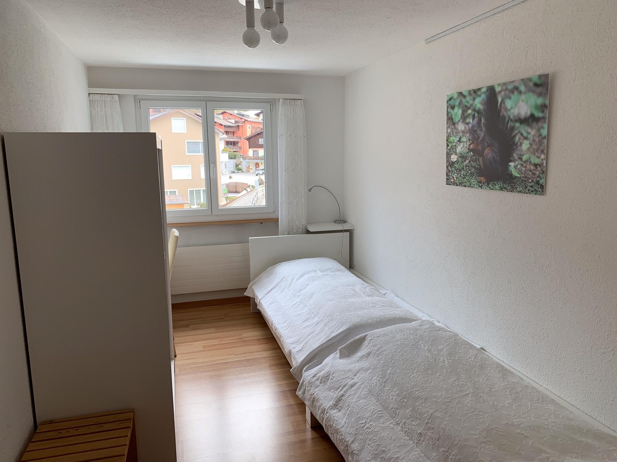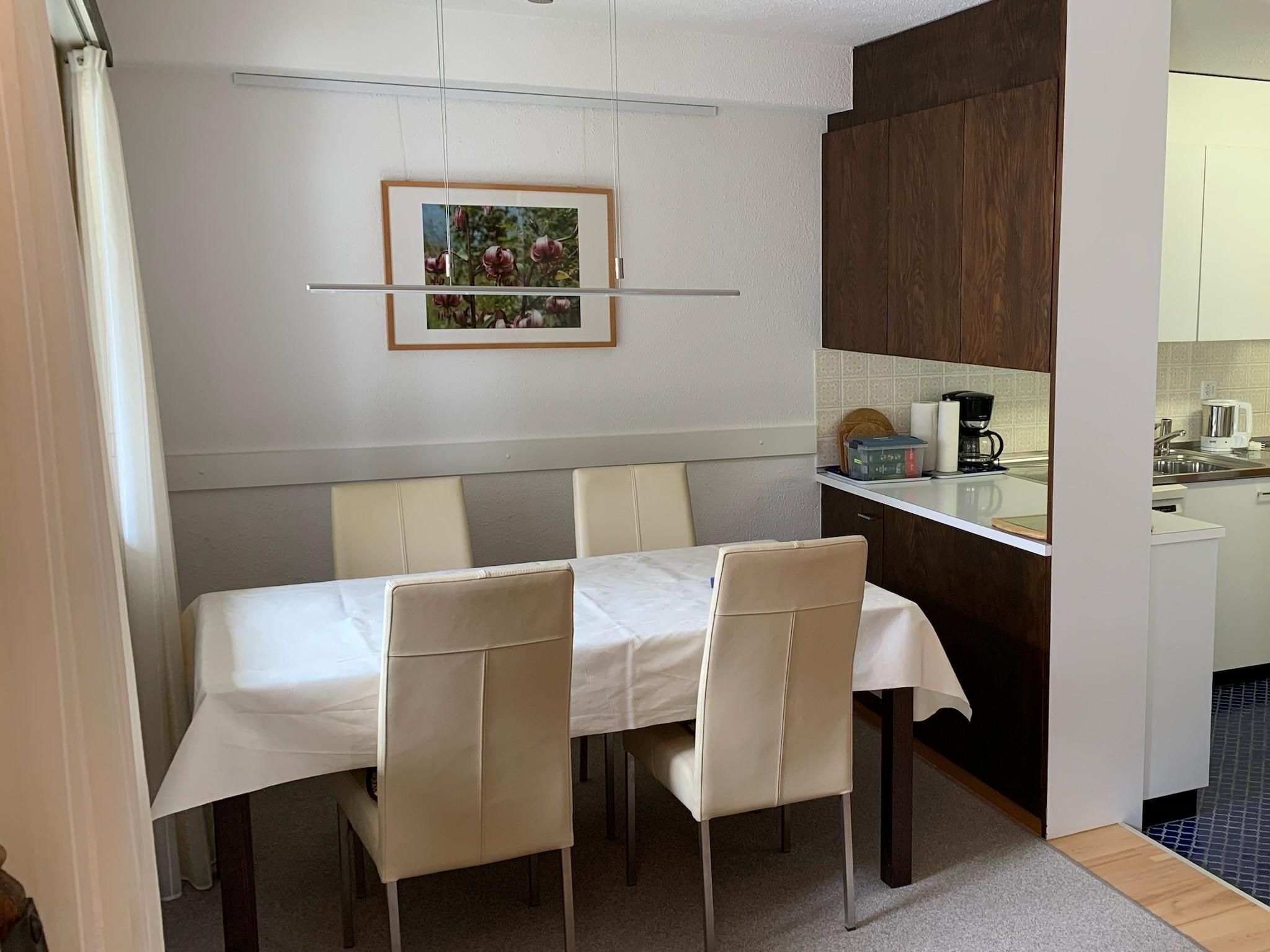 Entspannen Sie sich in unserer geräumigen und komfortablen 3 ½-Zimmerwohnung, die sich in einem gepflegten Mehrfamilienhaus im charmanten Quartier Rüefa in Klosters Dorf befindet. Die Haltestelle Rüefa des Ortsbusses ist nur 3 Gehminuten von unserer Unterkunft, dem Haus Sul Prau, entfernt. Bequem gelangen Sie über die geheizte Tiefgarage per Lift in das 2. Obergeschoss, wo sich unsere Wohnung auf großzügigen 84m² Wohnfläche erstreckt. Die Wohnung bietet ein Wohnzimmer mit zwei stilvollen Ledersofas, einem gemütlichen Couchtisch und einer praktischen Regalwand, ausgestattet mit einem Flatscreen-TV (inklusive eingebautem Radio). Vom Wohnzimmer aus führt eine Tür auf den nach Süd-Ost ausgerichteten Balkon mit einem herrlichen Blick auf Gotschna. Der offene Grundriss führt nahtlos in die einladende Essecke über.
