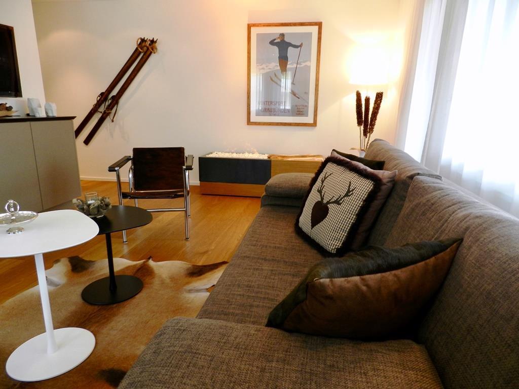 2 1/2 Zimmer Wohnung (ca. 58m) für höchste Ansprüche in einem Mehrfamilienhaus; Parkplatz in Einstellhalle; Skiraum; 3. Stock; Lift; schöner Südbalkon möbliert; Schlafzimmer mit Doppelbett (1.80), 2 Matratzen, TV; Dusche/Lavabo/WC; moderne offene Küche mit Induktionsherd, Backofen, Mikrowelle, Geschirrspühler, Kaffeemaschinen (Nespresso); Wohn-Esszimmer mit TV/Radio, Internet; die Betten sind bei Ihrer Anreise bezogen, Frottéwäsche, Küchenwäsche vorhanden; Nichtraucherwohnung - Haustiere nicht erlaubt!
