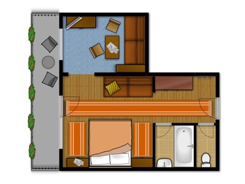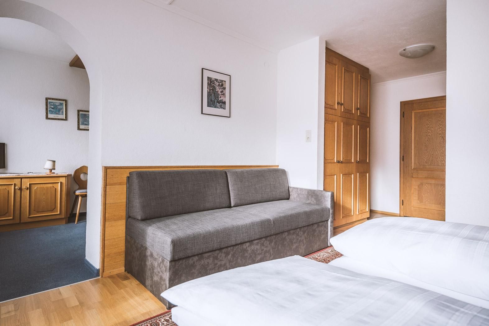Gemütliches Doppelzimmer mit Badewanne/WC, Wohnraum mit Schlafsofa, Telefon, Radio, Kabel-TV, Minisafe und Balkon.
