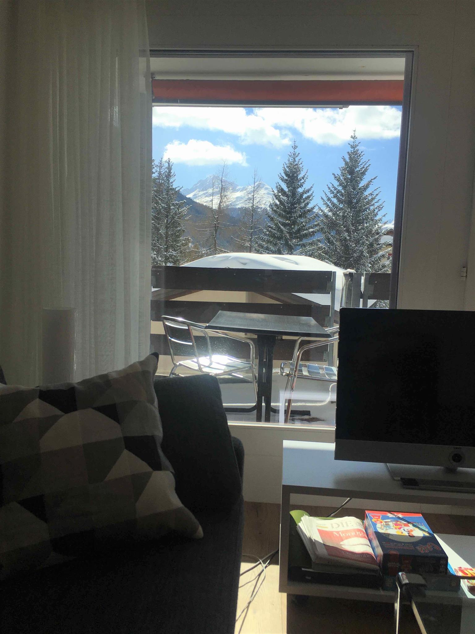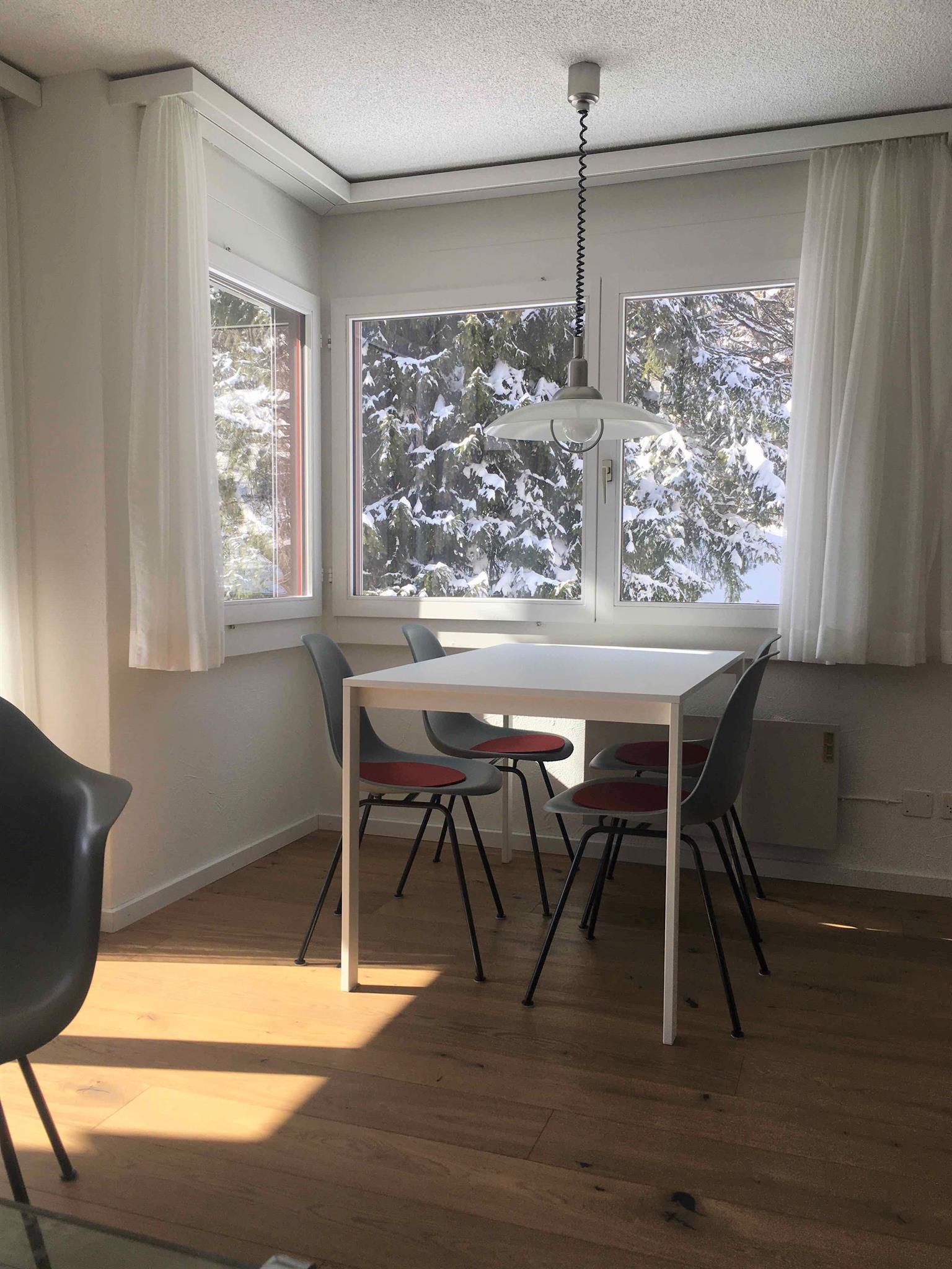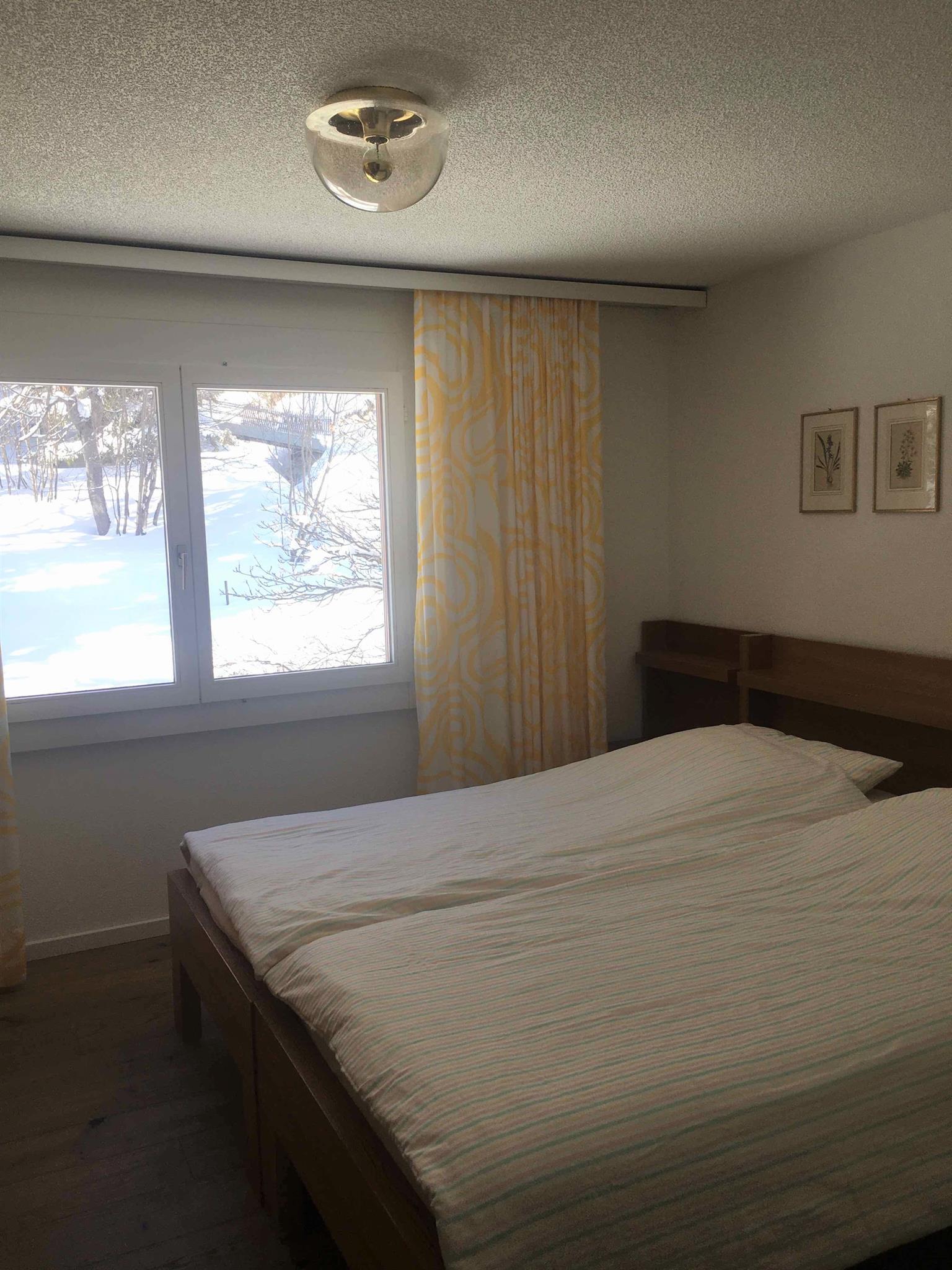 2-Zimmerwohnung (ca. 58 m2) renoviert im Sommer 2019 im 2. Stock; Mehrfamilienhaus mit Lift; Parkplatz in Einstellhalle (Höhe max. 2.05); Wohnung mit Balkon; zur Mitbenützung: Skiraum; separate Küche mit Backofen, Kühlschrank, Geschirrspühlmaschine und Kaffeemaschine; Wohn-Esszimmer; 1 Schlafzimmer mit Doppelbett; Bad und separates WC; Bettwäsche, Küchentücher, Frotteewäsche, Wolldecken, Duvet Nordisch, Radio, Fernseher, WLAN, 1 Abfallsack (blau), WC-Papier; ganze Wohnung mit Parkettboden; Haustiere sind nicht erlaubt. Die Wohnung wird nur an Nichtraucher vermietet!