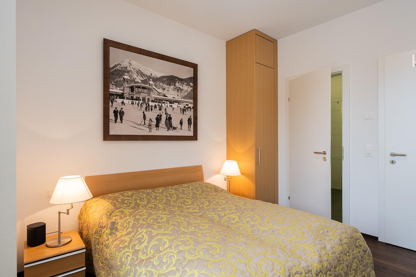4 Zimmerwohnung (ca. 144 m2) im 6. OG; Mehrfamilienhaus mit Lift, Balkon; 2 Autoabstellplätze in Garage; Mitbenützung des Skiraumes, Waschmaschine/Tumbler; Küche mit Backofen, 4 Plattenglaskeramikherd, Kühlschrank mit Tiefgefrierfach, Geschirrspülmaschine; 1 Bad/WC, 2 Dusche/WC; 3 Doppelzimmer mit je 1 Bett mit 2 Einzelmatratzen; Polstergruppe, Essecke, Bettwäsche, Frottewäsche, Küchentücher, Duvet, TV, WLAN, Abfallsäcke blau; Nichtraucher-Wohnung; keine Haustiere erlaubt; Kinderreisebett steht auf Wunsch zur Verfügung.