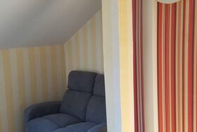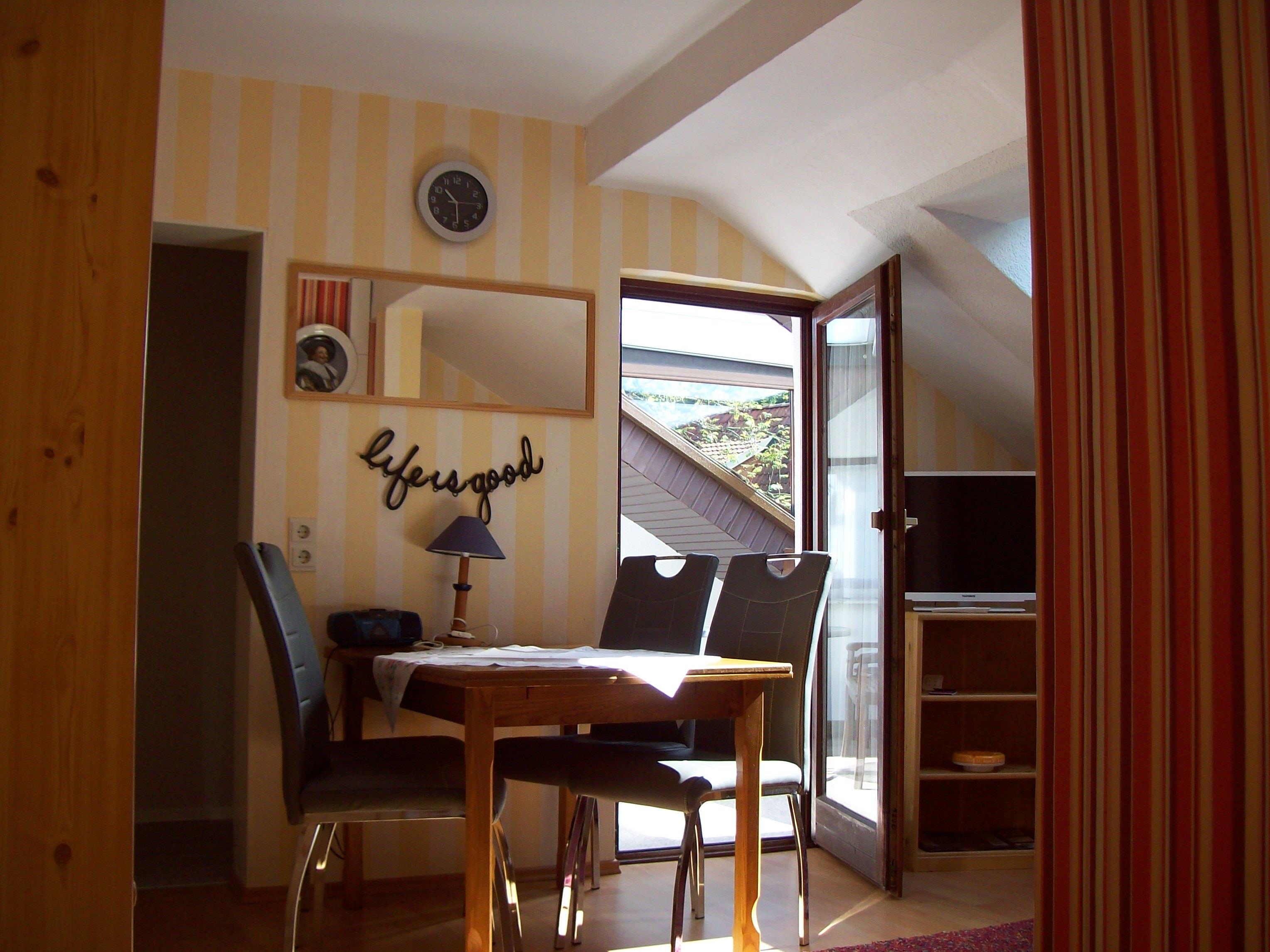 Gemütliche DG-Ferienwohnung (65 m²) mit Wohnküche, zwei getrennte Schlafzimmer mit jeweils Dusche und WC angrenzend (Bad en suite), sowie Balkon/Loggia für 2-4 Personen in sonniger, ruhiger Waldrandlage mit herrlicher Aussicht auf die Königsheide nähe Waldschwimmbad und Rundwanderweg. Kinderermäßigung auf Anfrage. Haustiere auf Anfrage: 5,00 € pro Tag.