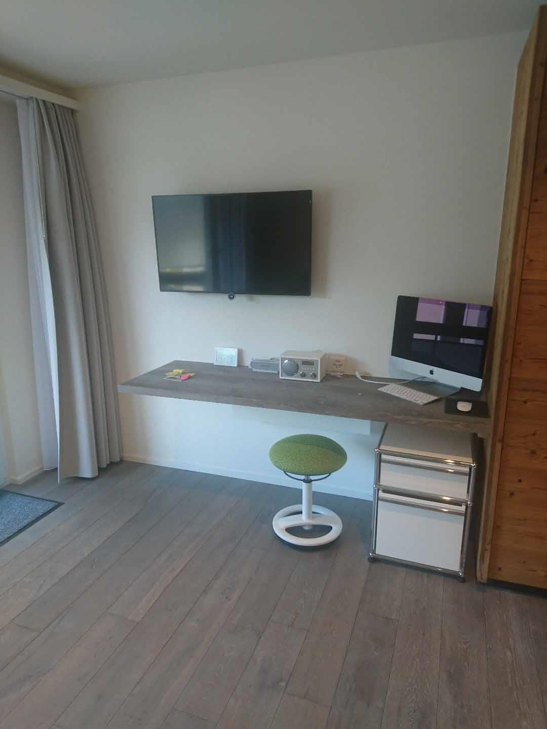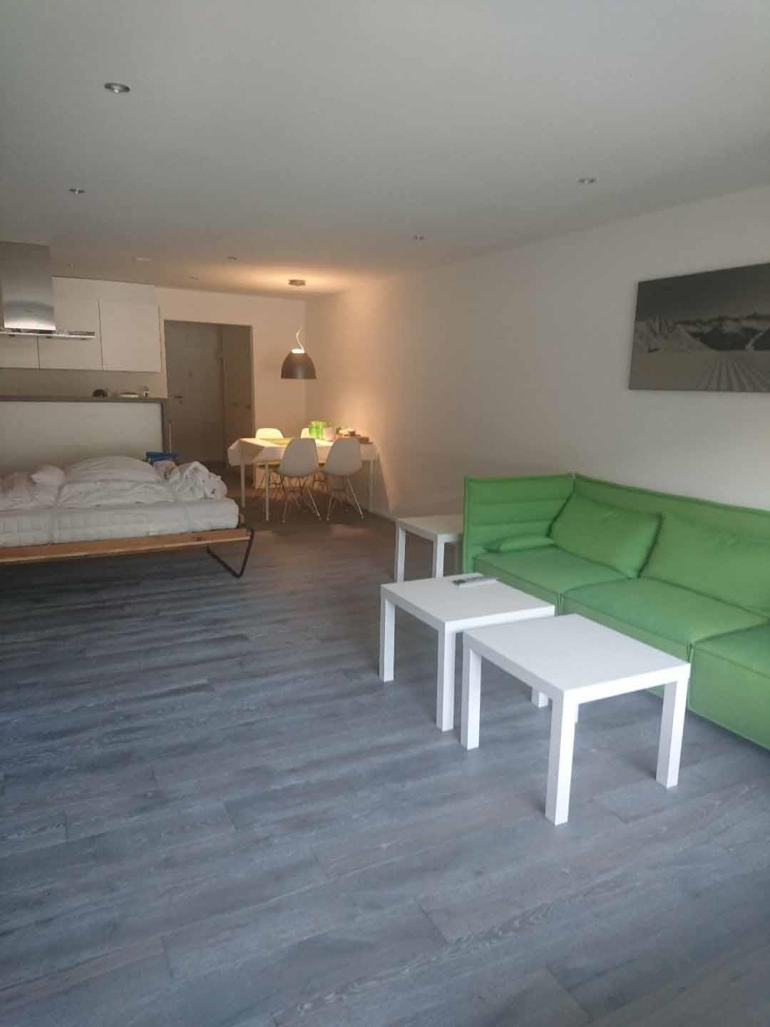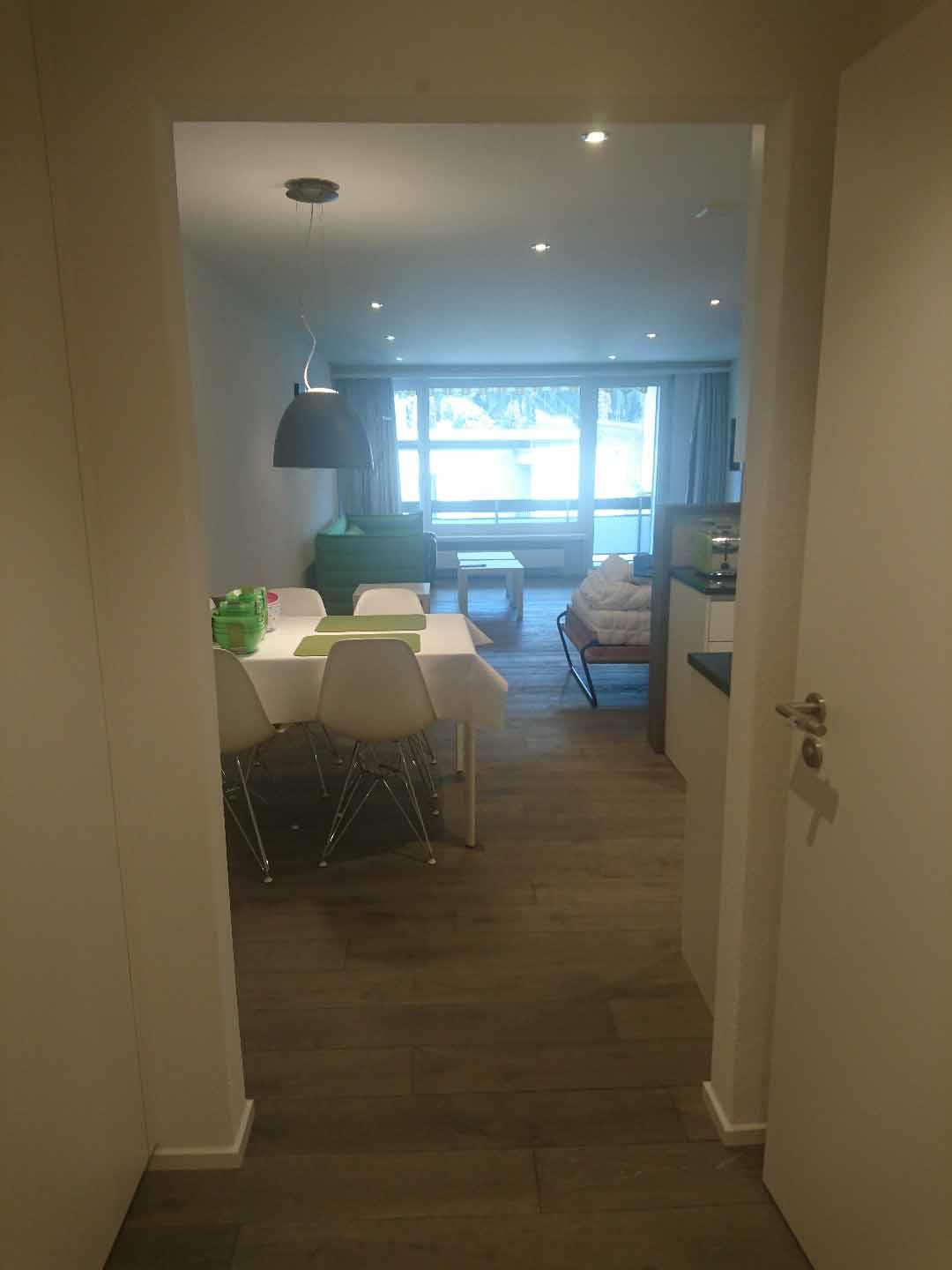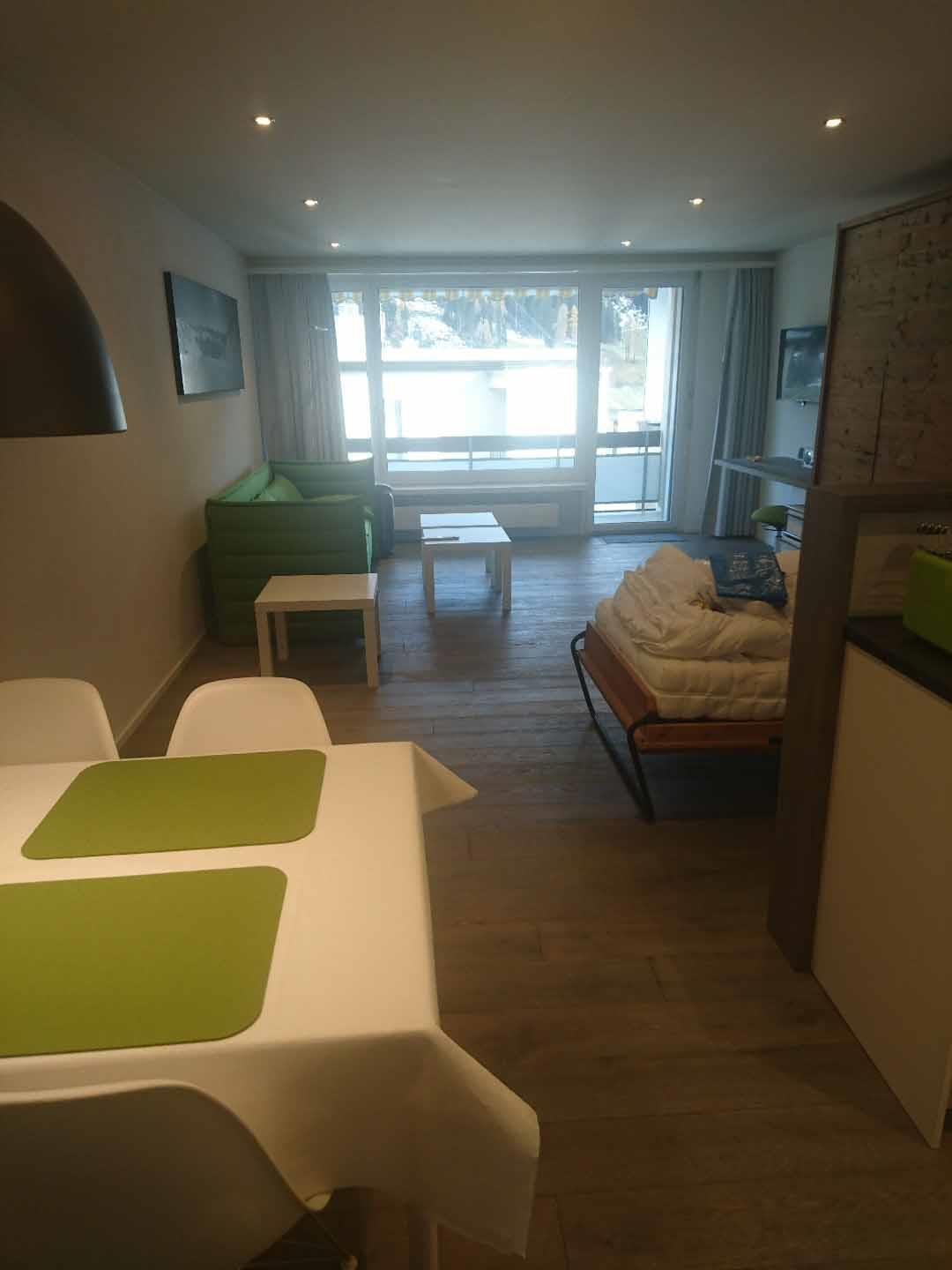 1.5 Zimmer-Wohnung ca. 45 m2. Komplett neue renoviert (2021); zentral gelegen; schöner, grosser, nach Süden gerichteter Balkon; Parkplatz; Waschmaschinen und Tumbler stehen nach Absprache zur Verfügung; Skiraum vorhanden; Wohn-Schlafzimmer mit zwei Schrankbetten, Sofaecke mit Sofa und Tisch, Essecke mit Tisch und 4 Stühlen; TV und Radio; offene Küche mit Induktionsherd, Backofen, Kühlschrank, Spülmaschine, neues Geschirr, Besteck, Töpfe etc.; behbare Dusche mit Alessia-WC und Lavabos; Badezimmer mit Steinboden, ganzer Wohn-Schlafraum mit Holzboden; Haustiere werden nicht zugealssen; Nichtraucher-Wohnung! In wenigen Minuten erreichen sie die Geschäfte, den Bus und die Jakobshornbahn.