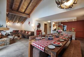 4 ½ Zimmer (ca. 140 m2) im 1 Dachgeschoss, Baujahr 2007, Mehrfamilienhaus mit Lift, 2 Balkons Südost und Südwest, 2 Autoabstellplatzen in Tiefgarage, Mitbenützung des Skiraum, Skischuhraum, Waschmaschine, Waschtrockner; Küche mit Backofen, 4 1/2 -Plattenglaskeramikherd, Dunstabzugshaube, Kühlschrank, Gefrierschrank, Geschirrspülmaschine, Mikrowelle, Kochinseln im Naturstein, Kaffeemaschine, Raclette- und Fondueset; 3 Schlafzimmer, eines mit Bad/WC/separate Dusche, jedes Schlafzimmer mit 2 Betten (90 x 210 cm); WC/Dusche; Wohnzimmer mit Polstergruppe, imposante Kamin, TV/DVD/CD; Essecke (100 x 300 cm Esstisch); Bettwäsche, Frotteewäsche, Küchentücher; Benutzung Internet; Abfallsäcke; Cheminé Holz vorhanden; Haustiere nicht erlaubt. Nichtraucher-Wohnung!