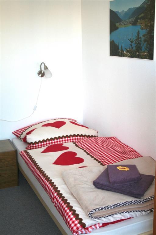 3 ½ Zimmerwohnung (ca.75 m2) im 3. Stock eines Mehrfamilienhauses mit Lift; ruhige Lage; Südbalkon mit unverbautem Blick auf die Bünda, Tisch und Stühle auf dem Balkon, 2 Sonnenliegen; zur Mitbenützung Garten, Waschmaschine, Trockner, Trockenraum, Skiraum; Parkplatz am Haus; Offene Küche mit Granitarbeitsplatte, 4 Plattenglaskeramikherd, Backofen, Mikrowelle, Kühlschrank, Gefrierfach, Geschirrspülmaschine, Kaffeemaschine, Toaster, Entsafter, Brotkasten und -Korb, Wasserkocher, Raclette - und Fonduegeschirr, ausreichend Töpfe, Pfannen und Geschirr; Bad mit Badewanne und Doppellavabo, separates WC; 1 Schlafzimmer rustikal eingerichtet mit Naturholzmöbeln, Doppelbett 200cm x 200cm, 1 Schlafzimmer mit Einzelbett 90cm x 200cm, zwei Betten im Kajütenbett, 90cm x 190cm, Duvet nordisch, schöne Fleecedecken zusätzlich pro Bett; Wohnzimmer mit nagelneuer Wohnlandschaft (Dez. 2012), HD Fernseher, digital TV, CD - Player, Internet/WLAN, Telefon, Kamin, Laminatboden; Bettwäsche, Küchentücher, Frotteewäsche, Kinderhochsitz, Kindergeschirr und -besteck, Kinder WC Sitz, Wickelkissen mit Auflage, Kleinkinderbett, WC-Papier, Abfallsack (blau); Haustiere nach Absprache mit dem Vermieter - Nichtraucherwohnung. Webseite http://www.skiandbeach.de/