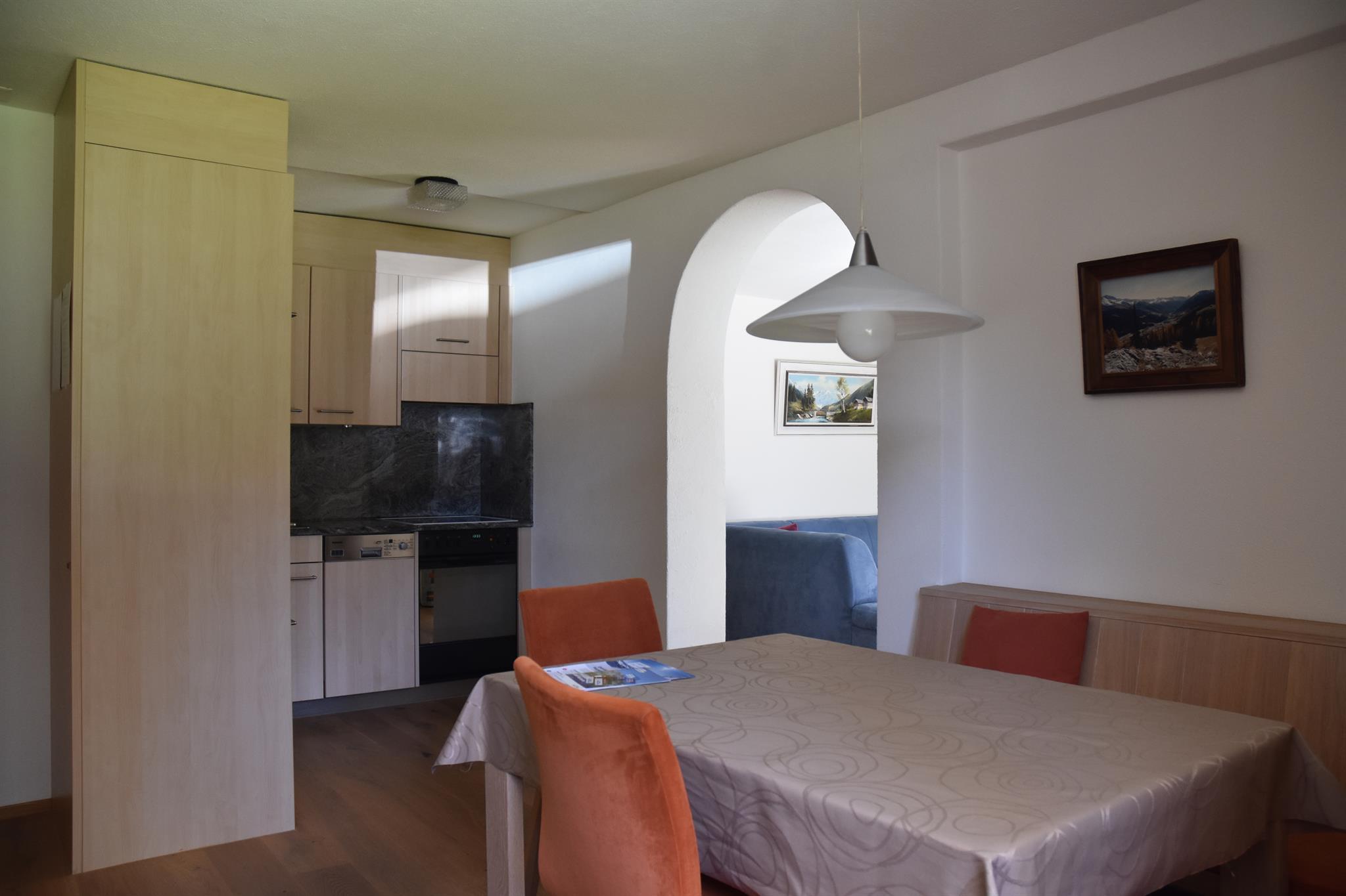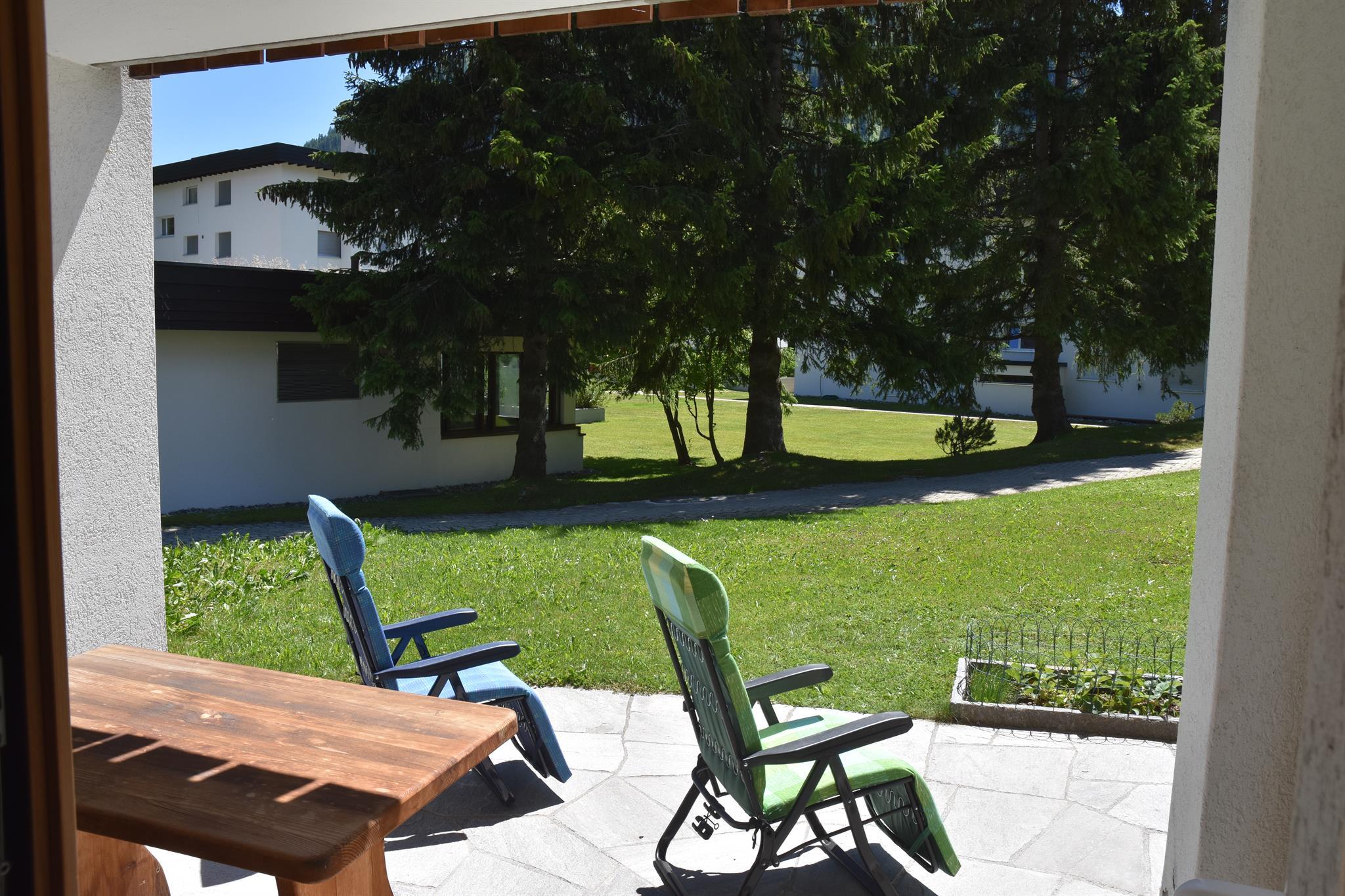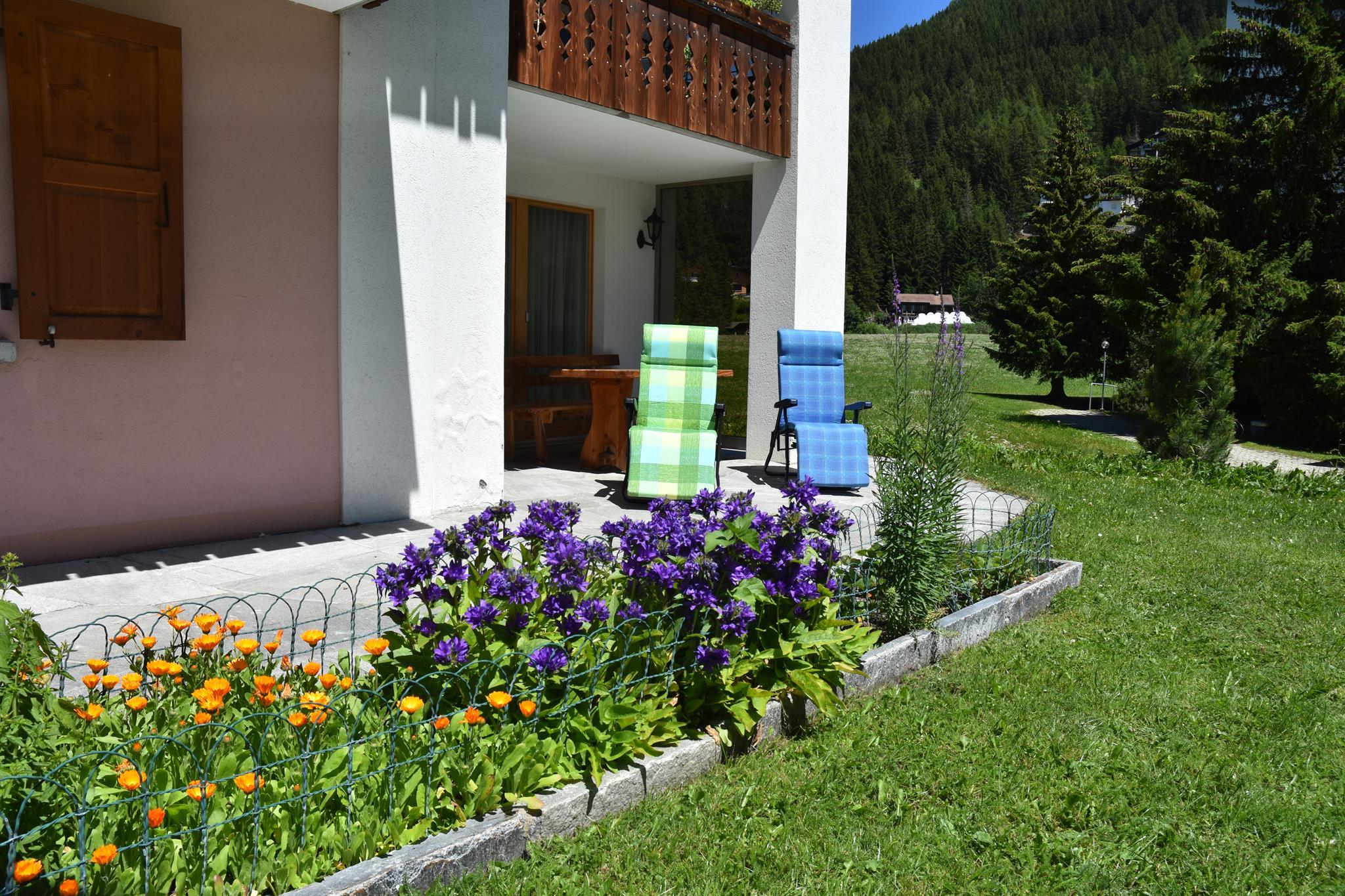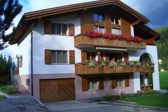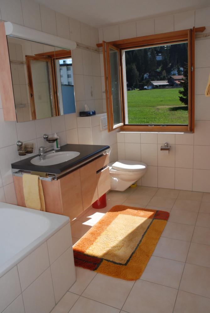 2-1/2 Zimmerwohnung (ca. 69m2) im Erdgeschoss eines Zweifamilienhauses frisch renoviert (2011); Gartensitzplatz, sehr ruhige und sonnige Lage in Davos Dorf direkt an der Langlaufloipe; Wohnungseigener Eingang, Skiabstellplatz und Skischuhtrockner in Garage, Parkplatz; zur Mitbenützung Waschmaschine (nach Absprache); Separate Küche mit Eckbank, Geschirrspüler, Kapsel Kaffeemaschine, Glaskeramikherd, Backofen, Kühlschrank, Raclette Gerät und Fonduegeschirr; grosses Bad mit Duschbadewanne, Lavabo und WC; Wohnzimmer mit Bettsofa; 1 Schlafzimmer mit 1 Doppelbett und 1 Klappbett; Bettwäsche, Frotteewäsche, Küchentücher, Wolldecken; W-LAN, Radio und HD-TV; Haustiere sind nicht erlaubt; Wohnung nur für Nichtraucher! Keine Untervermietung während dem WEF erlaubt!
