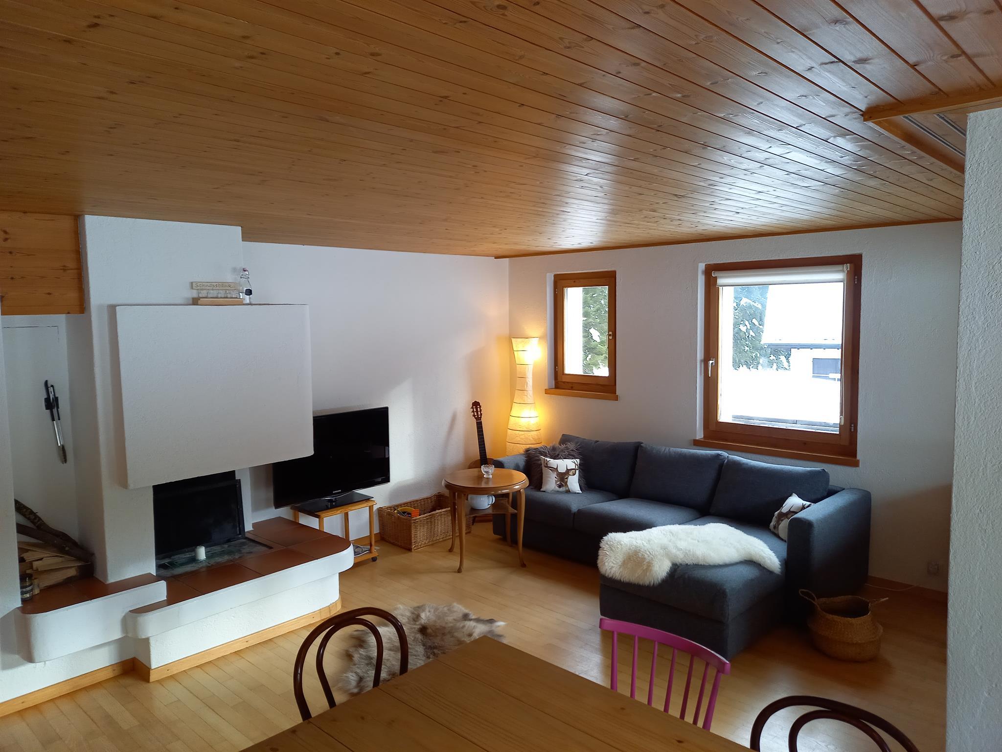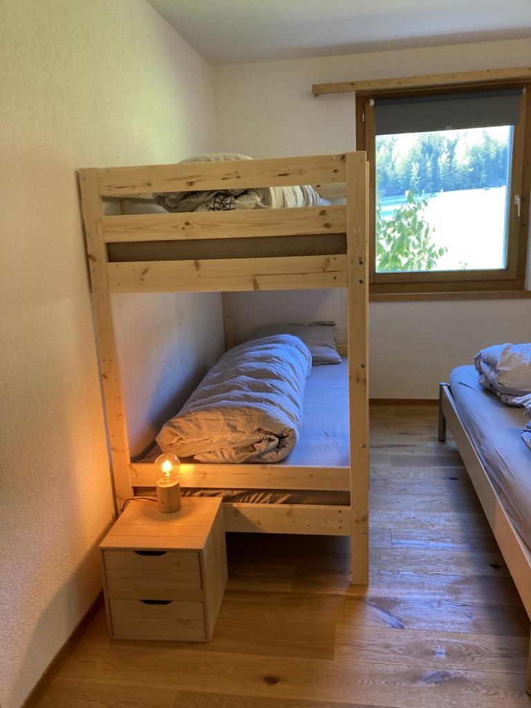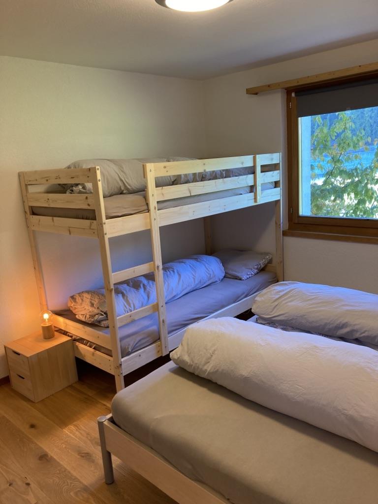 1 Schlafzimmer mit Doppelbett (mit einer Matratze) 160x200, 1 Schlafzimmer mit Doppelbett (mit einer Matratze) 180x200 und Kajütenbett 90x200; Wohnzimmer mit Polstergruppe, Essecke, Cheminee; Bettwäsche, Frotteewäsche, Küchentücher, Duvet nordisch; Digital-TV, schnelles Internet via WLAN, Abfallsäcke blau; Haustiere erlaubt; Nichtraucher-Wohnung!