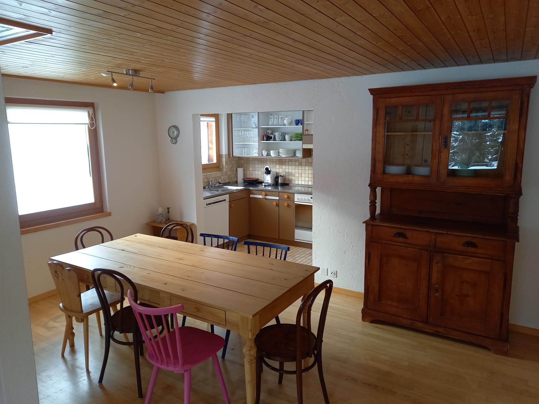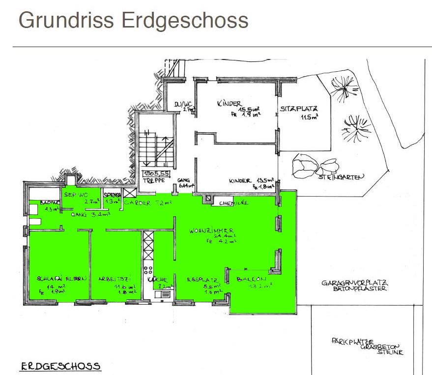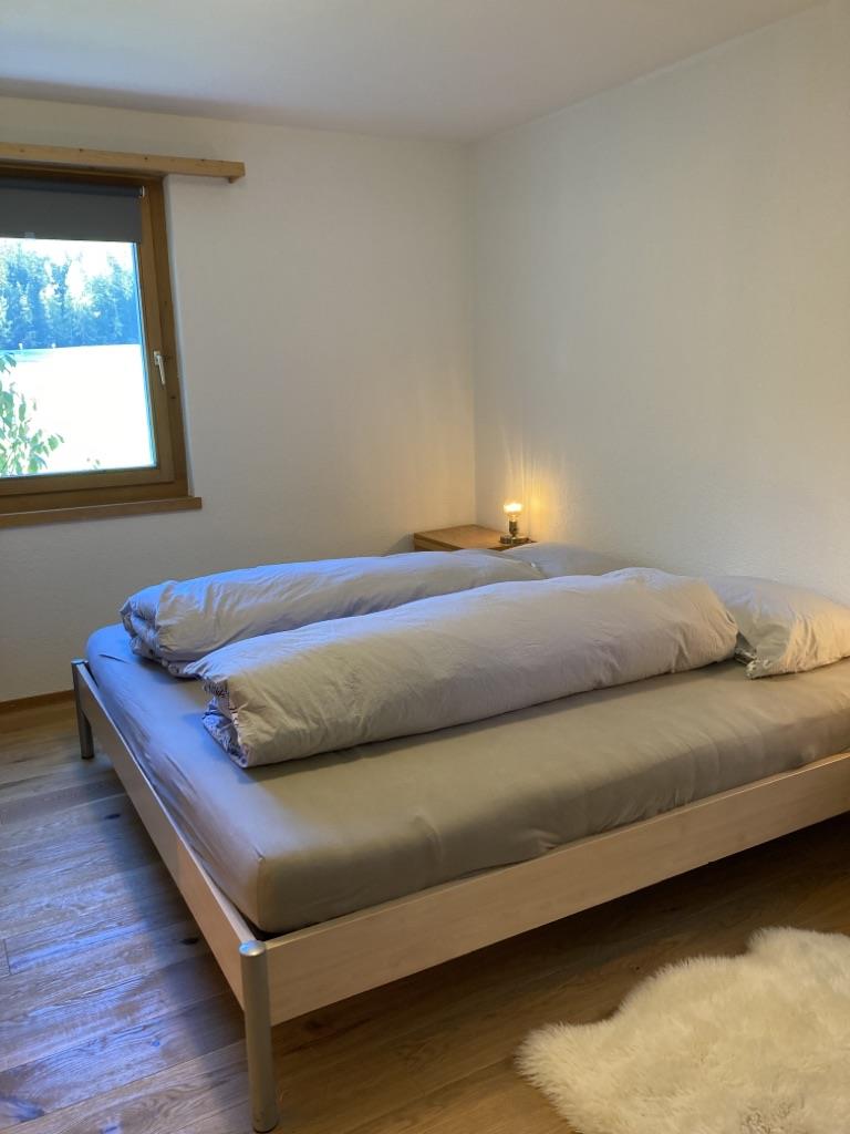 3 1/2 Zimmerwohnungen (ca. 90m 2) im EG, Mehrfamilienhaus, Balkon Südwest; Autoabstellplatz vor/in Garage; Mitbenützung des Skiraumes, der Waschmaschine/Tumbler; Küche mit Backofen, 4-Plattenglaskeramikherd, Kühlschrank mit Tiefgefrierfach, Geschirrspülmaschine; Bad/WC, sep. WC;
