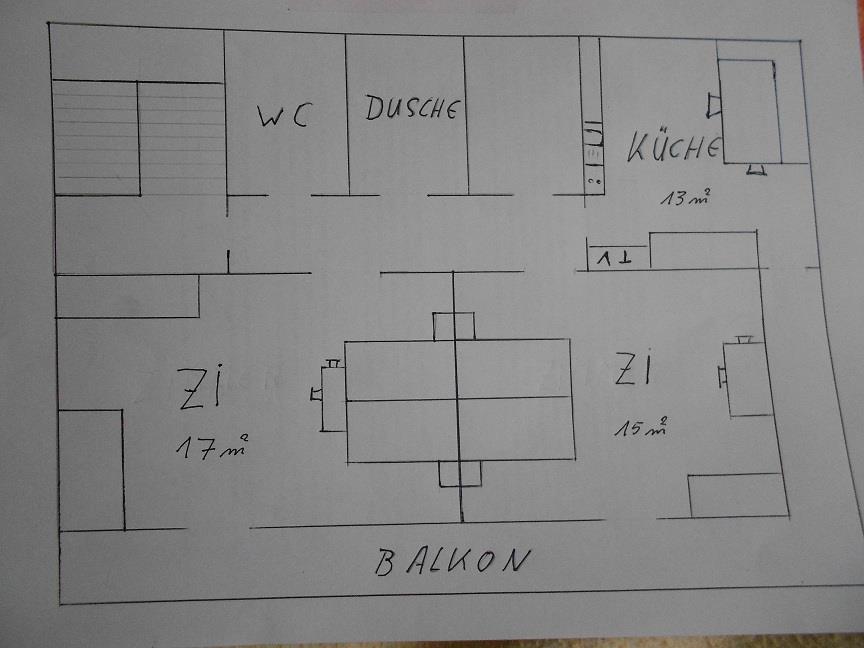 Unsere Ferienwohnung ist 80 m²groß, bestehend aus Wohnküche, 2 getrennten Schlafzimmern, Dusche und WC. Der Balkon ist von der Wohnküche und den Schlafzimmern zugänglich.