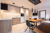 • Vollausgestattete Küche mit Kühlschrank, Herd, Mikrowellen-Backofen-Kombi, Spülmaschine, Toaster und Illy E.S.E. Espressomaschine inklusive 10 ausgesuchten Espresso Pads