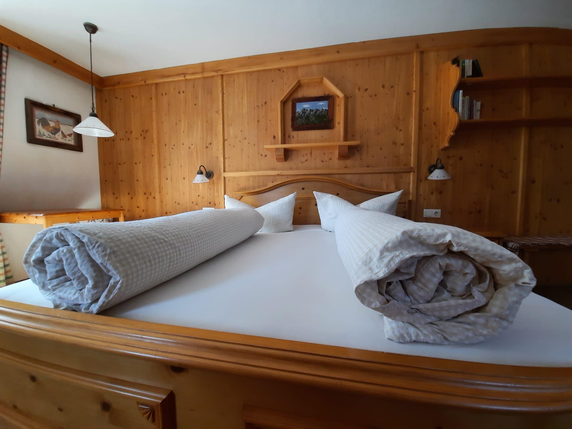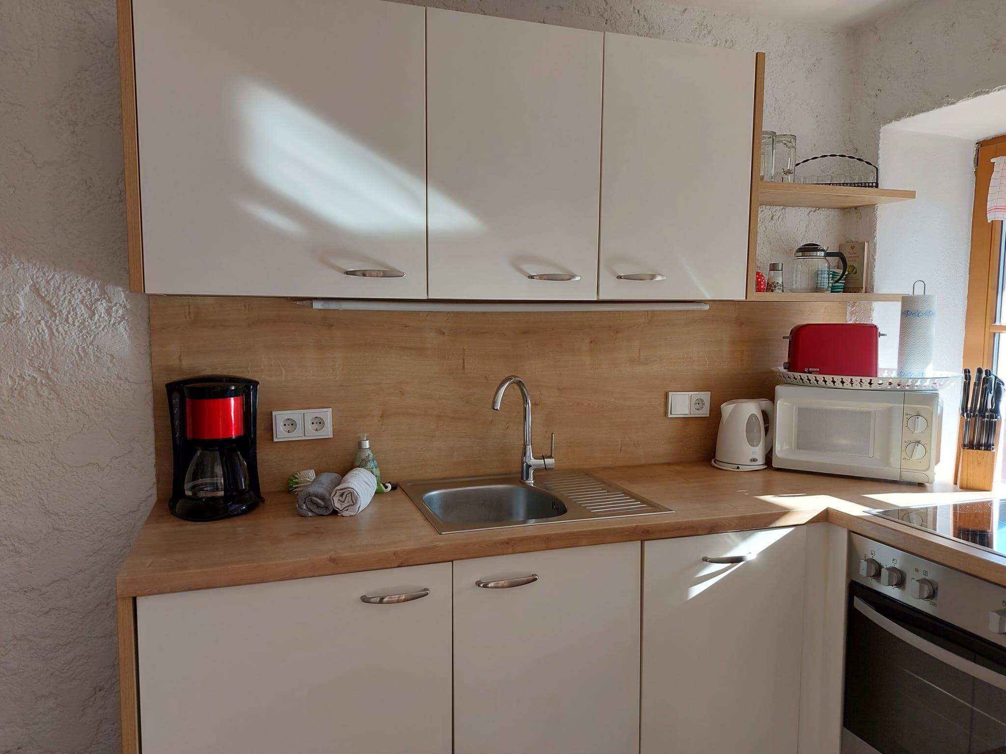 Unsere Ferienwohnung Sonnenblume befindet sich im 2. Stock unseres Bauernhauses und hat ein Schlafzimmer mit Badewanne und WC, eine Küche mit gemütlicher Sitzecke, ein weiteres Badezimmer mit Dusche und WC, ein Schlafzimmer mit Hochbett und einen großen Balkon.