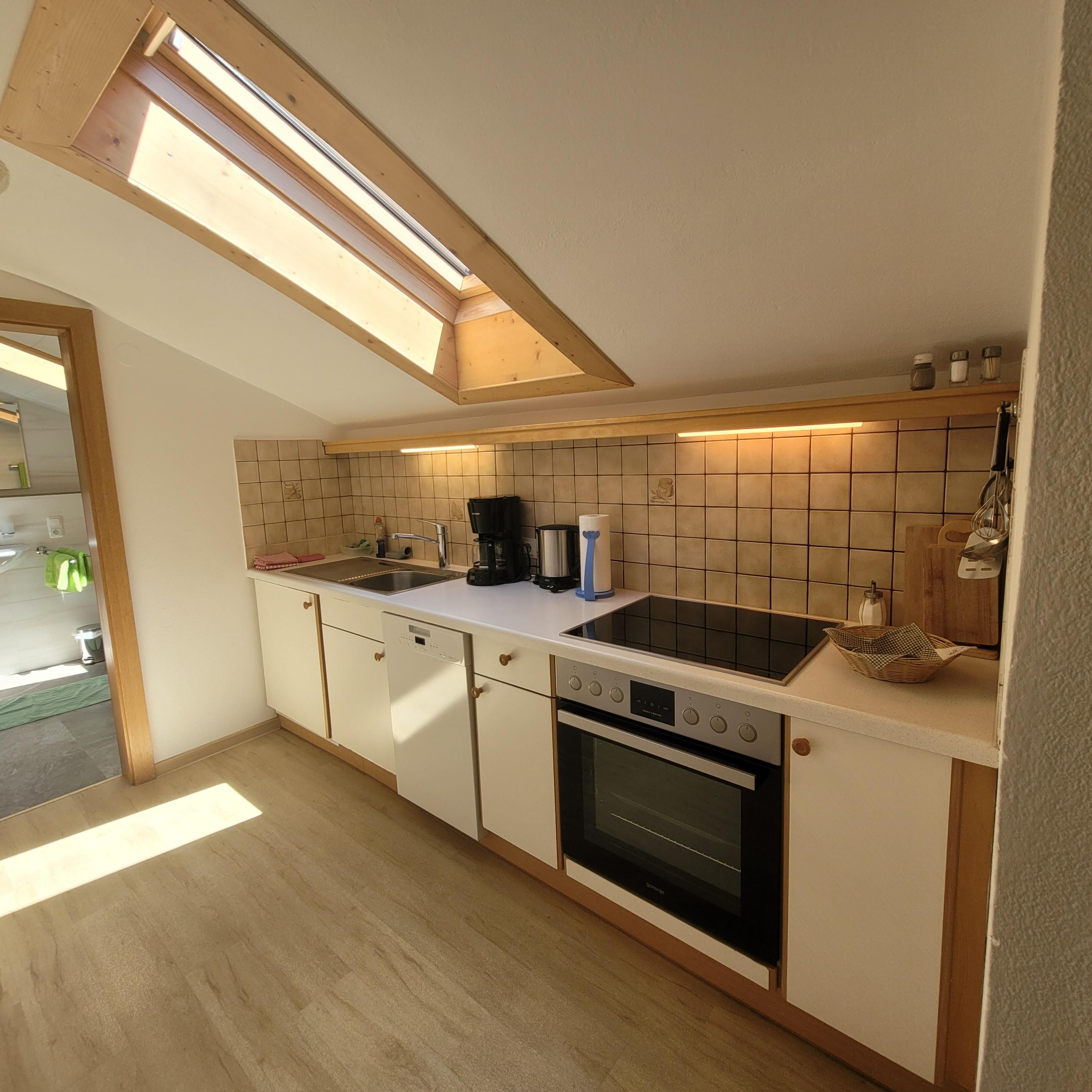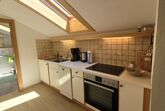 abgetrennte kleine Küche mit Geschirrspüler, Nespresso oder Filterkaffeemaschine,