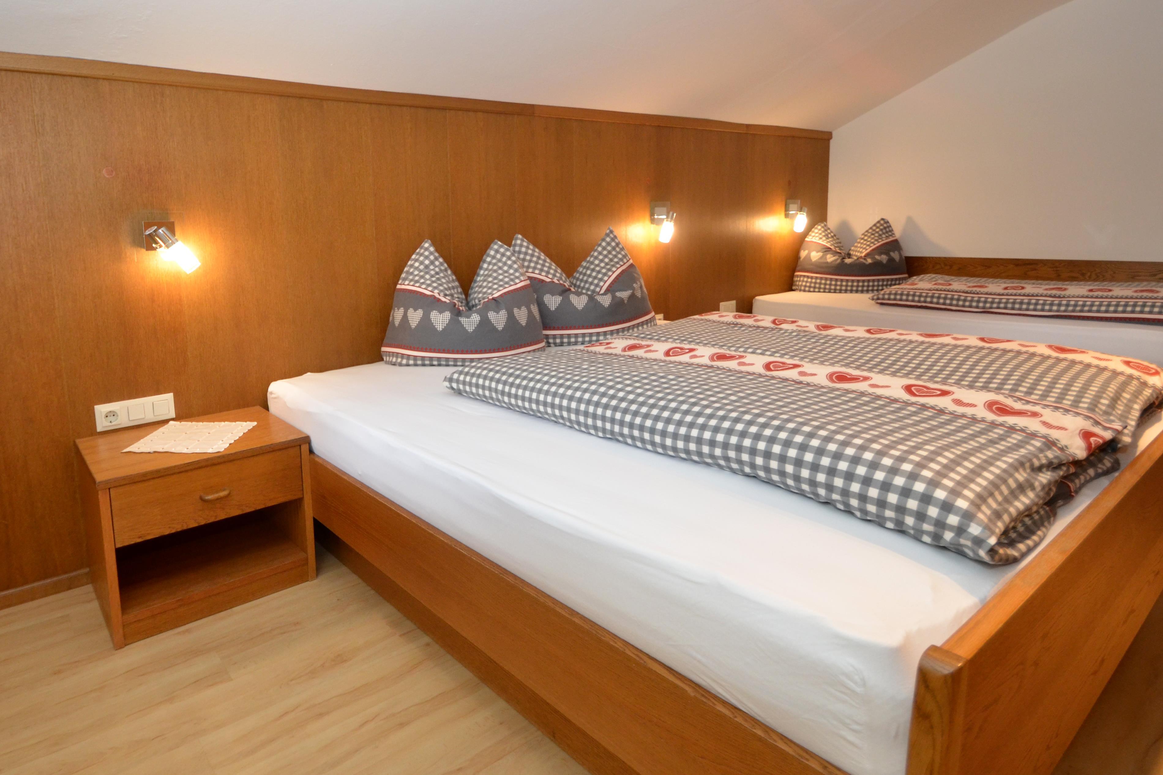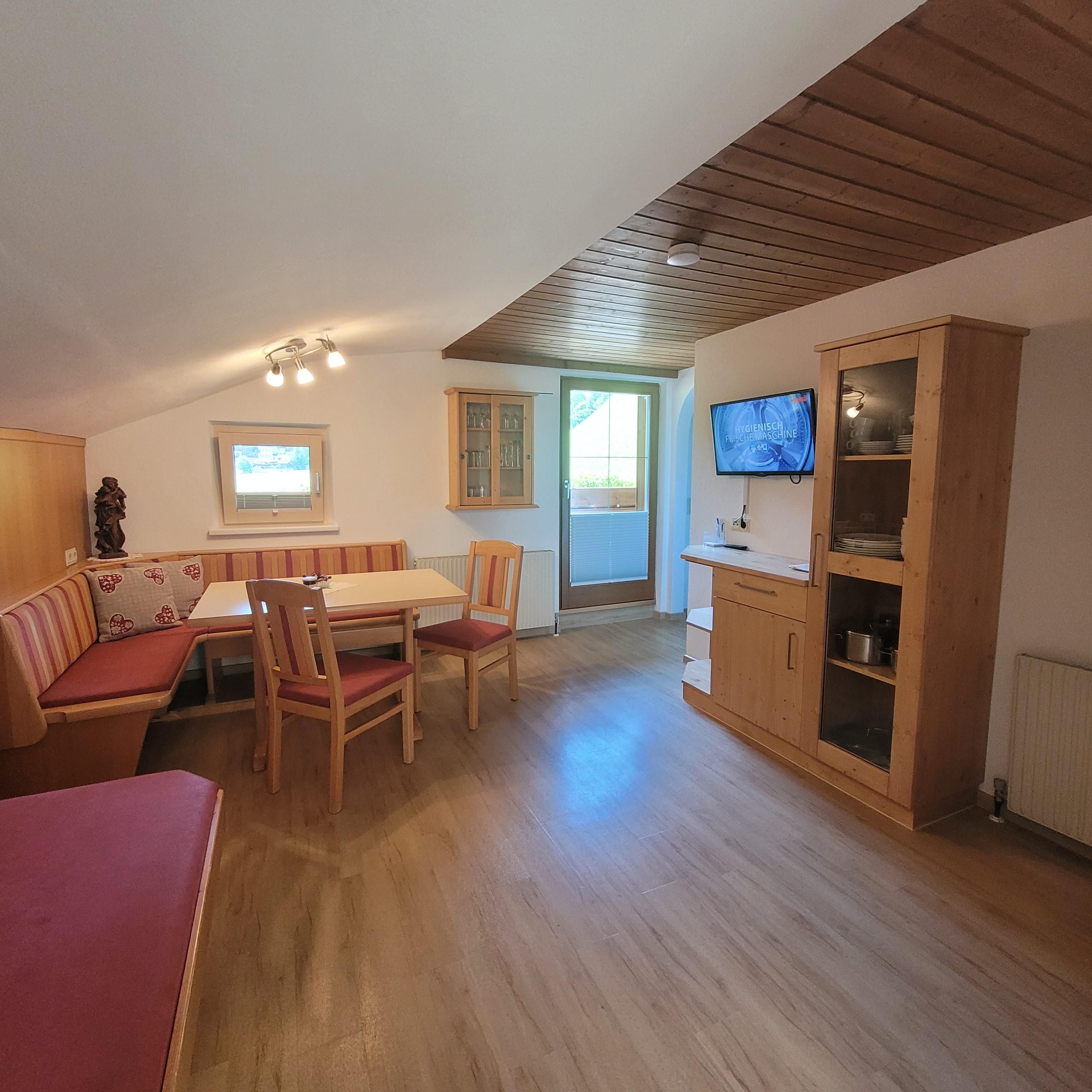 Unser gemütliches Appartement verfügt über ein Schlafzimmer mit Doppelbett sowie ein Schlafzimmer mit Doppelbett und Einzelbett. Ein Badezimmer ist mit Badewanne und WC ausgestattet, das Zweite mit Dusche und WC. Weiterhin erwarten Sie im Wohnraum eine Sitzecke mit Flachbild-Sat-TV, ein Balkon mit Blick auf den Garten und den Stubaier Gletscher sowie eine voll ausgestattete Küche.