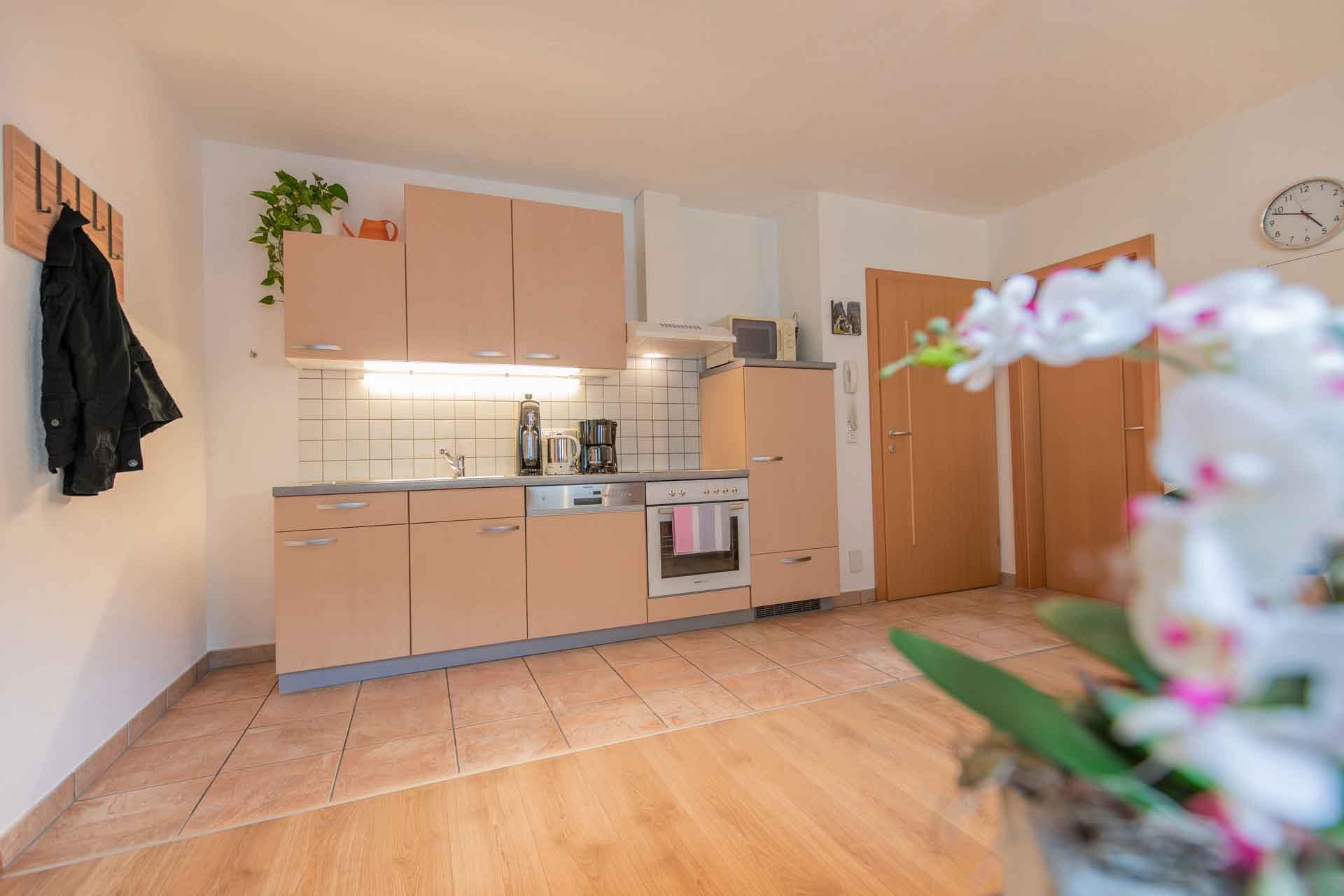 • Die Küche ist mit Spülmaschine, Kühlschrank mit Gefrierfach, Filterkaffeemaschine, Soda Sprudler, Cerankochfeld, Backrohr, Toaster, Eierkocher, Mikrowelle sowie komplettes Koch- und Essgeschirr ausgestattet.