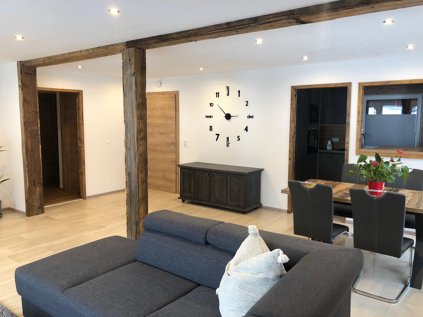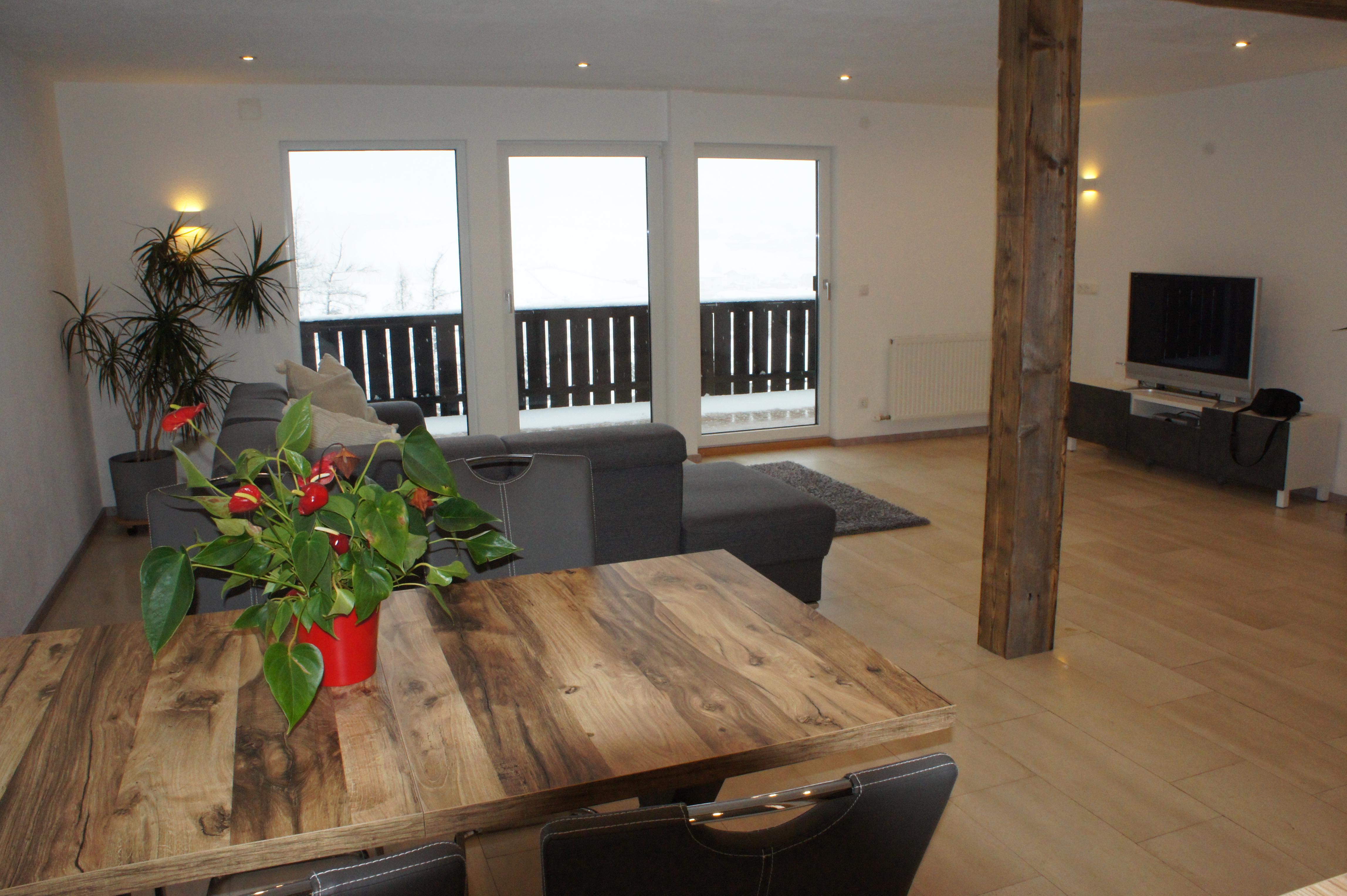 Die Ferienwohnung bietet Platz für 2-4 Personen ca. 88m² und ist mit 2 Schlafzimmern, 1x DU/WC, Küche einen großen Wohnzimmer, Skischuhtrockner und einer Terrasse ausgestattet. Die Küche ist voll eingerichtet mit Geschirrspülmaschine, E-Herd mit Backofen, Mikrowelle, Kaffeemaschine, Wasserkocher und Toaster. Eine gemütliche Sitzecke lädt zum gemeinsamen Essen oder gemütlichem Beisammensein nach einem Ski- oder Wandertag ein. Allergiker geeignet, keine Teppichböden.