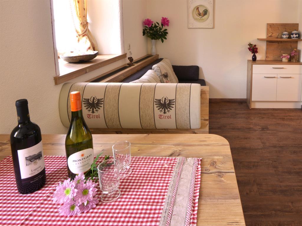 Im behaglichen Wohnraum finden Sie eine moderne Einbauküche mit Cerankochfeld, Kühlschrank, Geschirrspülmaschine, Kaffeemaschine, Wasserkocher, Toaster und Mikrowelle mit Grillfunktion. Die bequeme Essgruppe bietet Platz für vier Personen. Eine gemütliche Sitzecke mit Flat-TV komplettiert den Wohnbereich. Bei Belegung mit vier Personen wird die ausziehbare Couch (1,60 m Breite) im Handumdrehen zum bequemen Schlafplatz. Das romantische, verträumte Schlafzimmer mit Doppelbett und Flat-TV ist wie der Wohnbereich im traditionellen Tiroler Stil gehalten und verspricht einen erholsamen Schlaf. Das geräumige Bad ist mit Dusche und WC ausgestattet. Im beheizten Vorraum des Eingangsbereiches haben Sie die Möglichkeit Ihr Sport- und Wandermaterial abzulegen. Im Winter können Sie auch Ihre Skier und Snowboards sicher und geschützt ablegen.