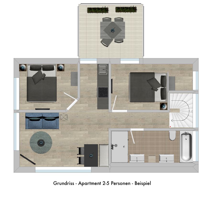 -2 Schlafzimmer mit 1,60m Queen-Size Betten,