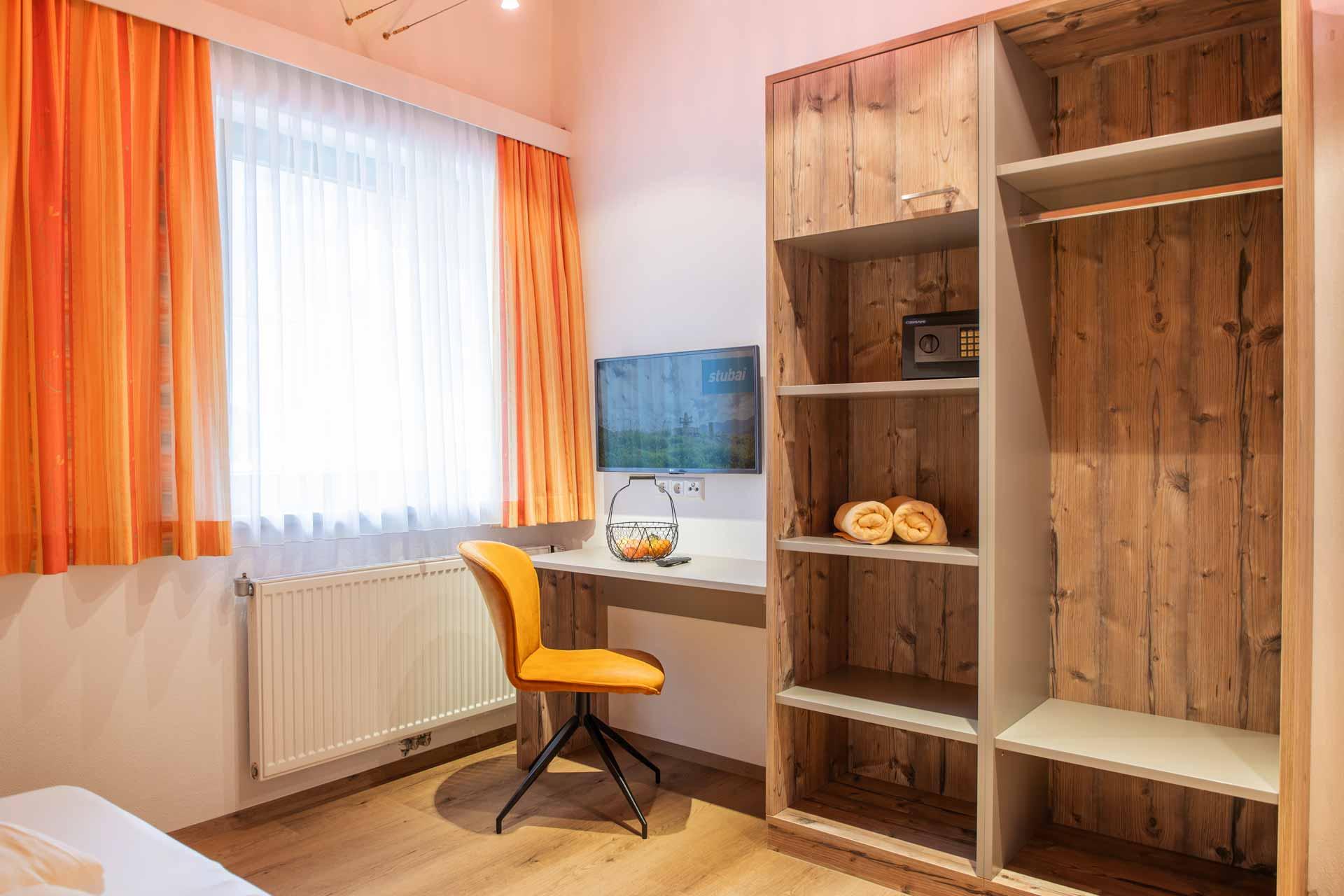 Wir bieten unseren Gästen gesamt 8 stilvoll eingerichtete Ferienwohnungen mit viel Raum für 2-8 Personen und eigener Terrasse oder großem Sonnenbalkon mit herrlichem Blick auf den Stubaier Gletscher und den Mischbachwasserfall. Der kostenlose Skibus hält direkt oberhalb unseres Haus Chiara. An lauen Sommertagen verbringen Sie gemütliche Grillabende in unserem Garten. Jede Ferienwohnung bietet gemütliche Schlafzimmer, mit eigenem modernem Badezimmer und in unserer großen Ferienwohnung genießen Sie die Ruhe auf 3 sonnigen und großzügigen Balkonen. Jede Ferienwohnung ist mit Allergiker freundlichen Betten und hochwertigen Böden ausgestattet.