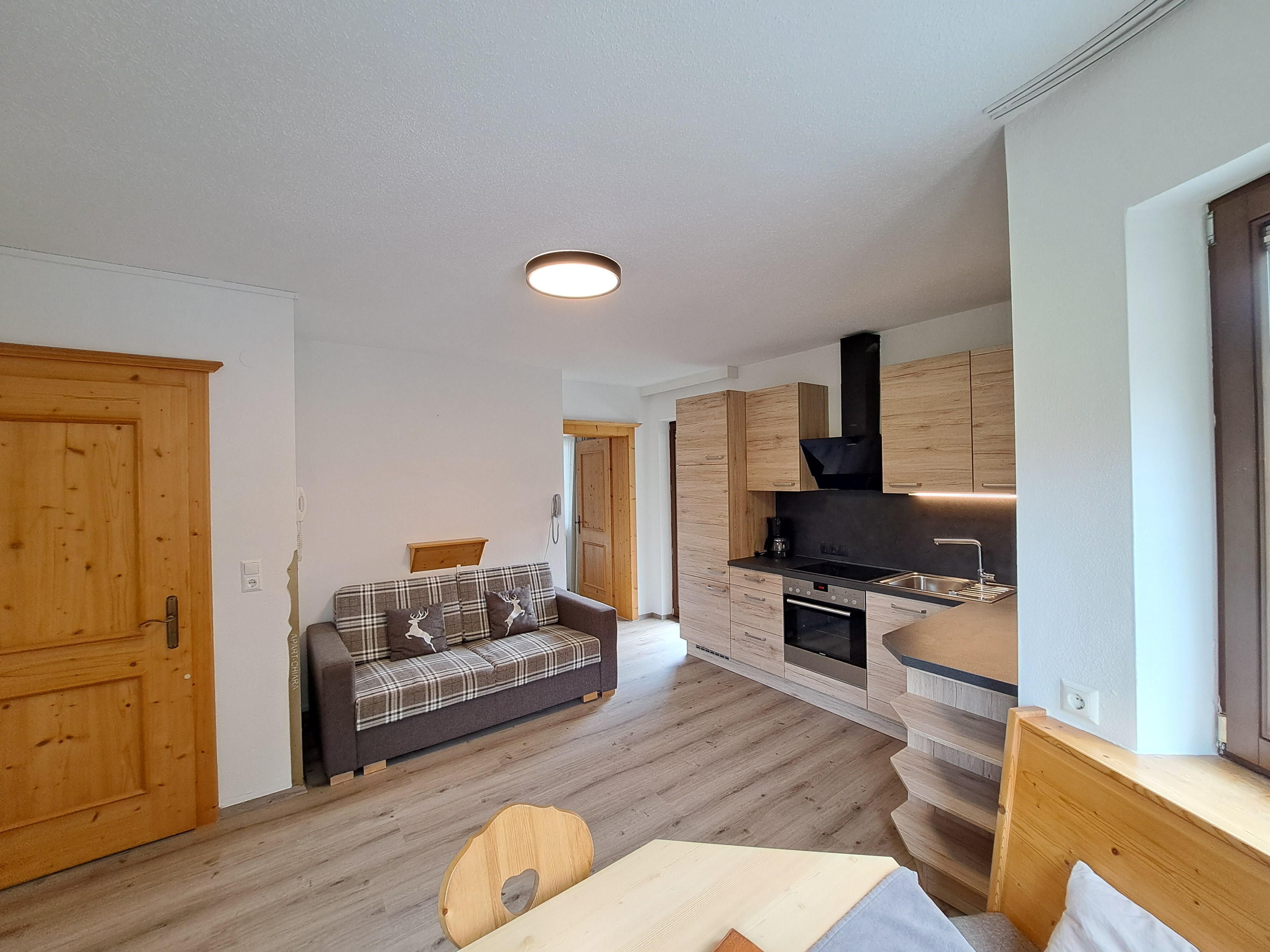 Im Wohnraum gibt es die Möglichkeit ein drittes Bett aus dem Sofa zu machen.