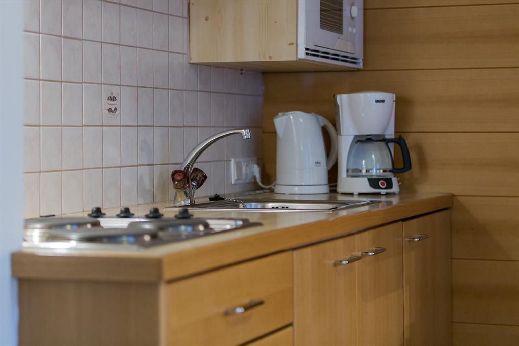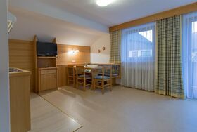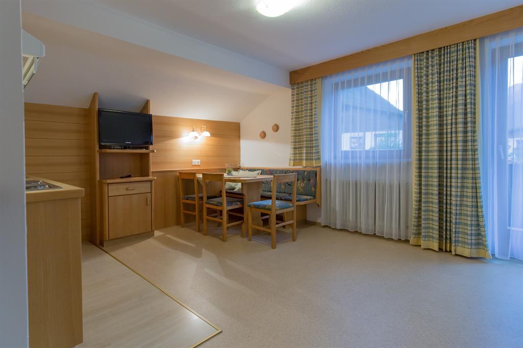 1 Doppelzimmer, Vorraum mit Schlafmöglichkeit für 1 Person, Badezimmer mit Dusche , WC, Wohnraum mit Küche und bequemer Schlafcouch für 1 oder 2 Personen. Küche ausgestattet mit E-Herd, Kühlschrank, Mikrowelle, Toaster, Wasserkocher. Großer Balkon mit Gartenstühlen und Tisch.
