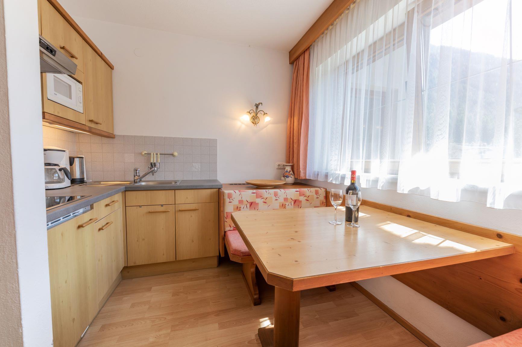 Die mit 3S-Edelweiß ausgezeichnete Ferienwohnung Sonnenhut bietet auf 50 m² Tiroler Gemütlichkeit und allergikerfreundliche Böden. Sie verfügt über ein separates Schlafzimmer, einen Wohn-Schlafraum, eine voll ausgestattete Küche mit Sitzecke und ein Badezimmer mit Dusche/WC.