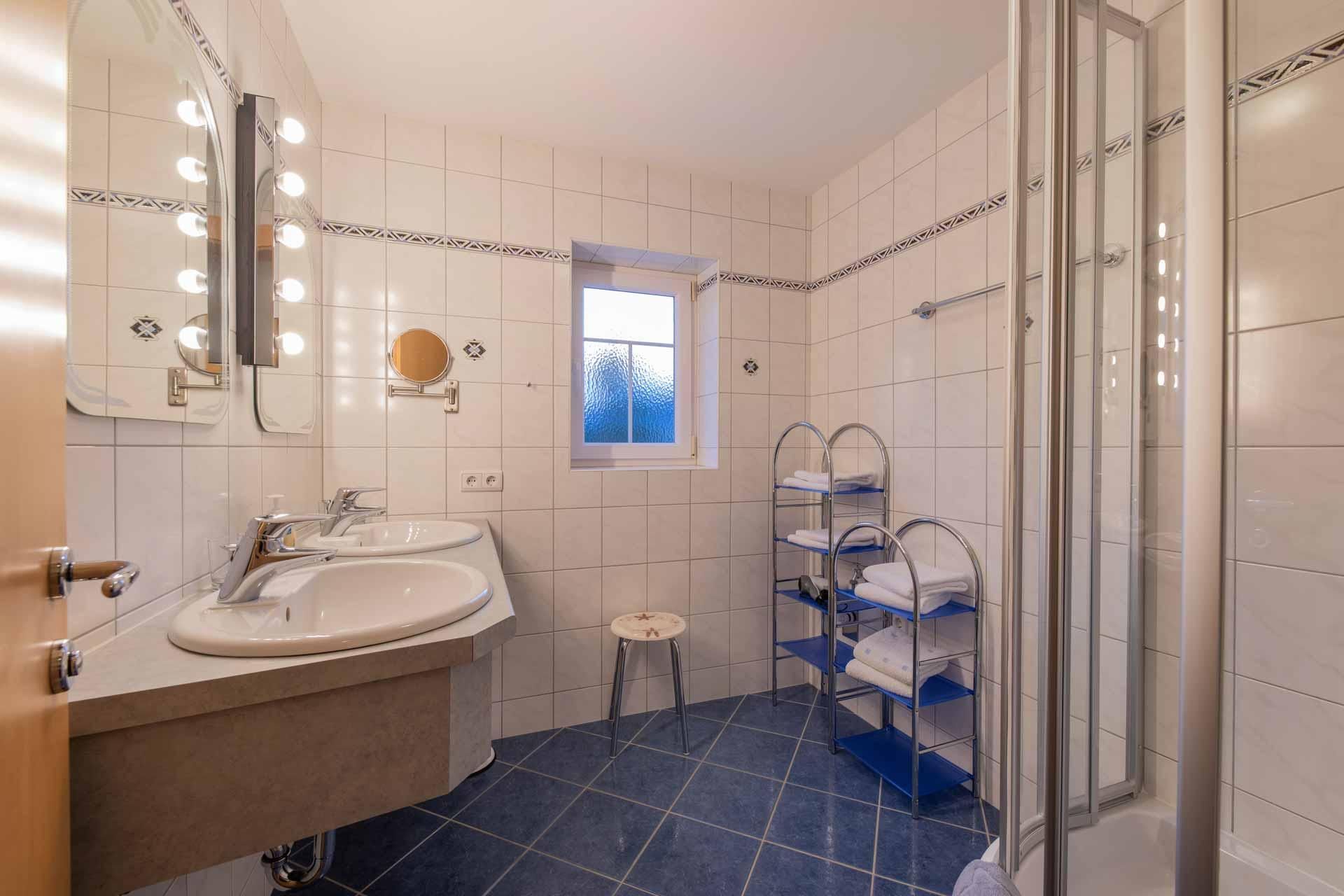 Das großzügige Badezimmer mit Doppelwaschbecken und Duschkabine ist getrennt von der Toilette in welcher zusätzlich eine Waschmaschine zu Ihrer Verfügung steht. Genießen Sie die Morgensonne auf der einen, die Abendsonne auf der anderen Terrasse und bewundern Sie den unvergesslichen Blick in die Stubaier Bergwelt.