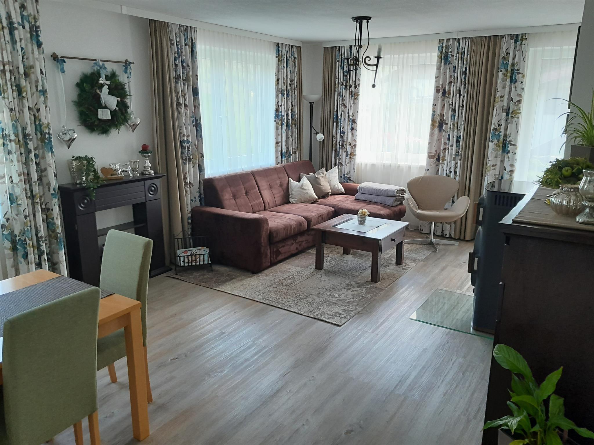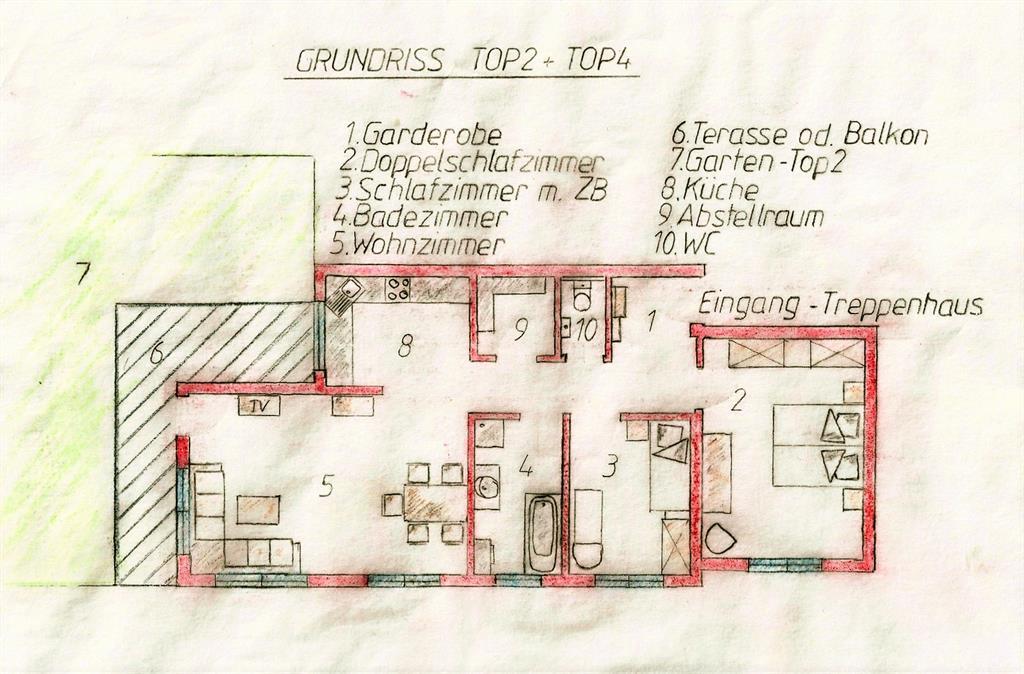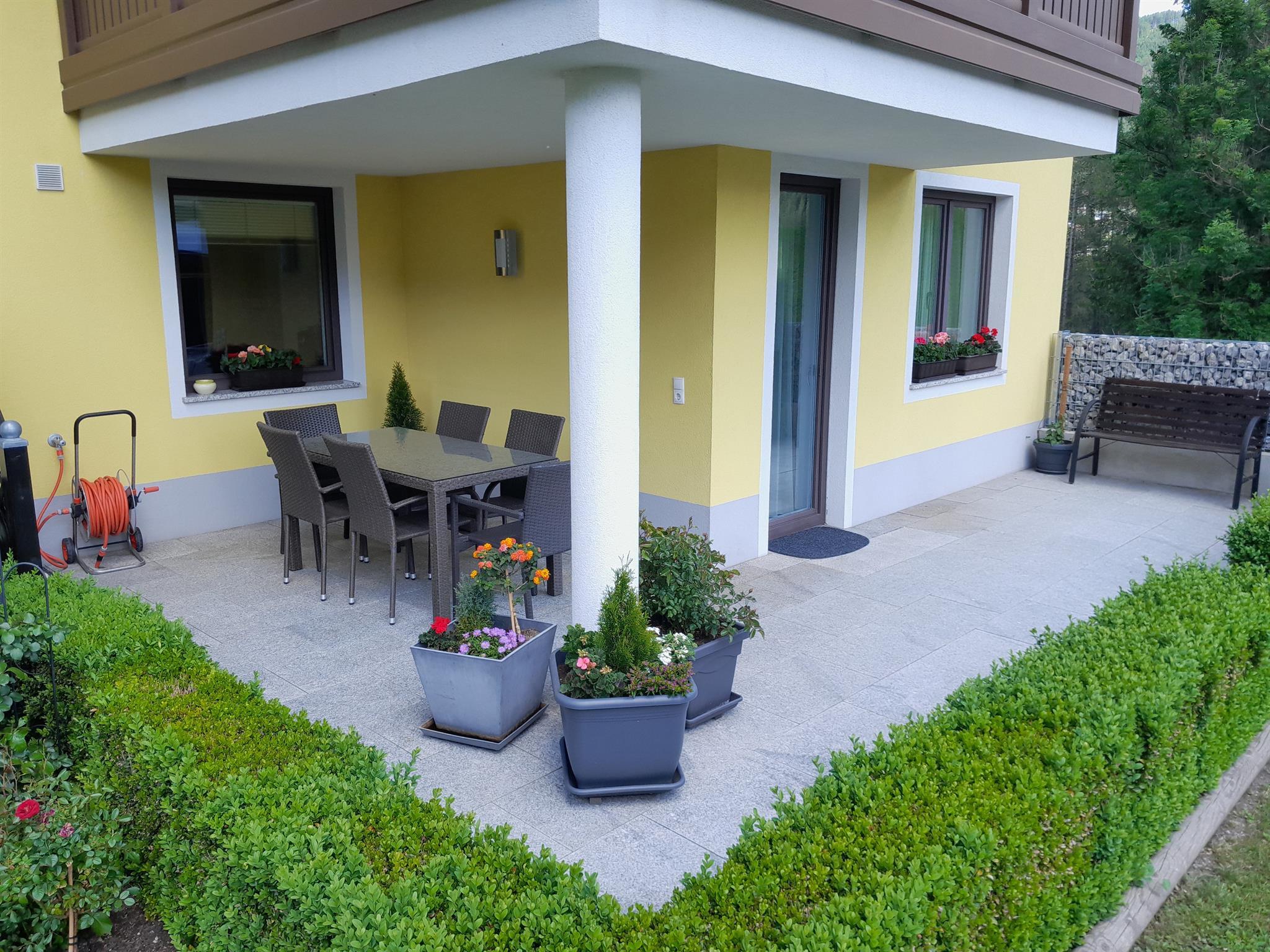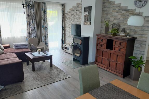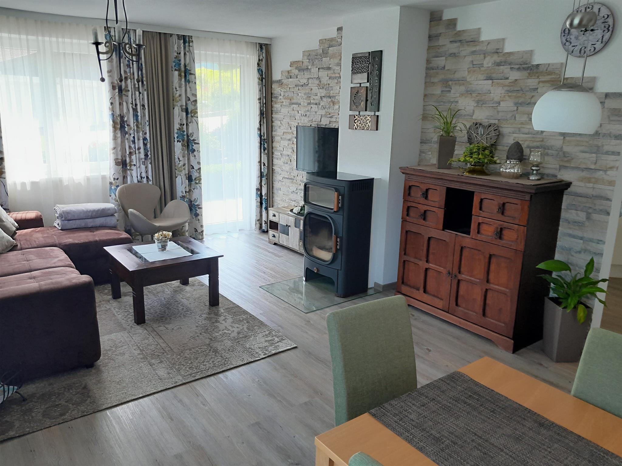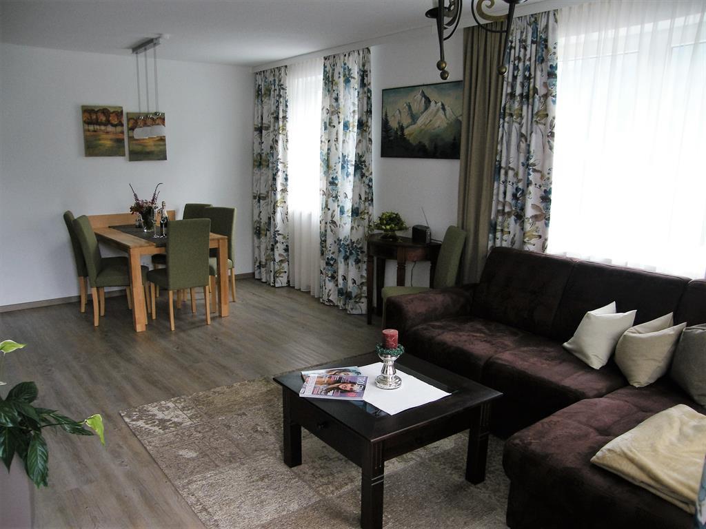 Unsere Appartements sind liebevoll eingerichtet und verfügen über jeweils 2 Schlafzimmer, ein großes Wohn- Esszimmer, Küche, Badezimmer mit getrenntem WC, sowie einer Terrasse. Sonnenliegen stehen für sie bereit. Die Wohnungen sind ausgestattet mit Fernseher, Radio und Internet. Im Badezimmer finden Sie Badewanne plus separater Dusche, Waschmaschine und Haarfön vor. Die Küchenausstattung umfasst neben Geschirrspüler, Herd mit Ceran-Kochfeld und Backrohr, Mikrowelle, Wasser- und Eierkocher, Toaster, Kühlschrank mit Gefriermöglichkeit, vollautomatischer Kaffeemaschine auch die Ausstattung mit Kaffee, Tee, Geschirr, Besteck, Kochtöpfen, Gläsern, Geschirrtüchern und Reinigungsmitteln. Bettwäsche und Handtücher sind vorhanden und im Preis inkludiert. Im Keller steht ein Wäschetrockner kostenlos zur Verfügung, hier können Sie ihre Sportausrüstung für die Dauer des Aufenthaltes deponieren, einen PKW-Abstellplatz gibt es direkt vor dem Haus.