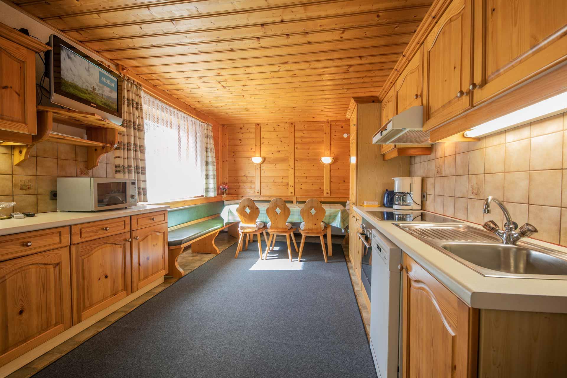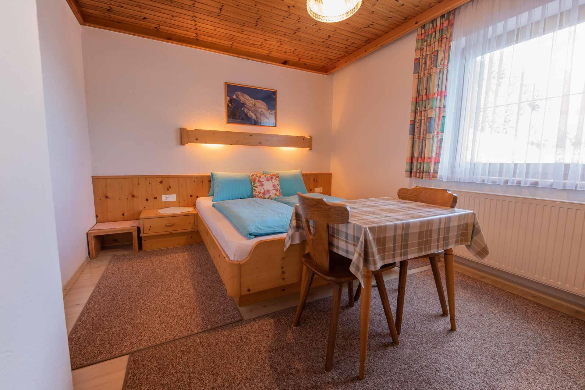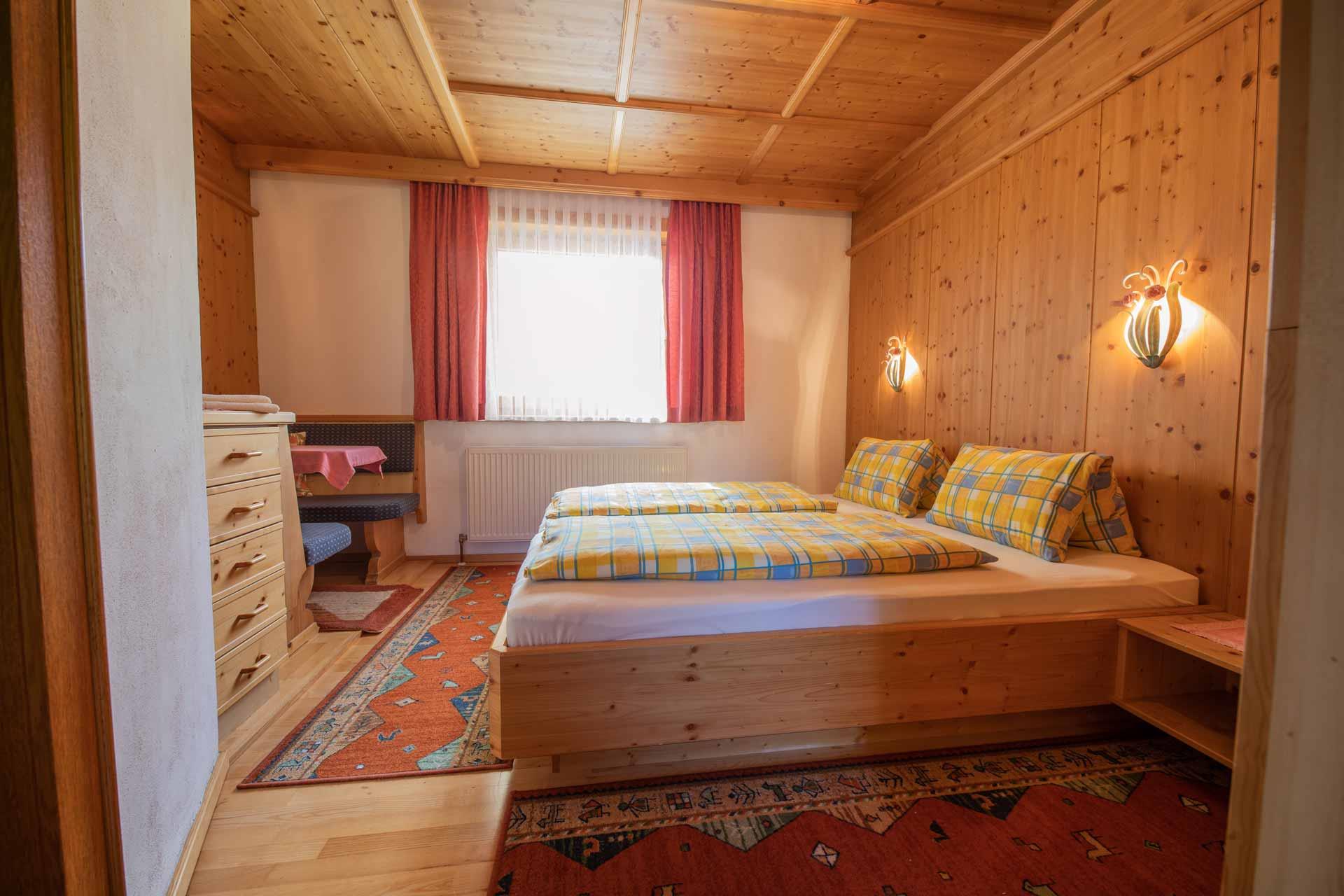 Die kleinere Ferienwohnung verfügt über ein Dreibettzimmer mit Dusche und WC, ein Doppelzimmer mit einem Bad mit Badewanne und separatem WC. Das Besondere an der Ferienwohnung ist eine Tiroler Bauernstube mit Kachelofen, welche zum Verweilen einlädt.