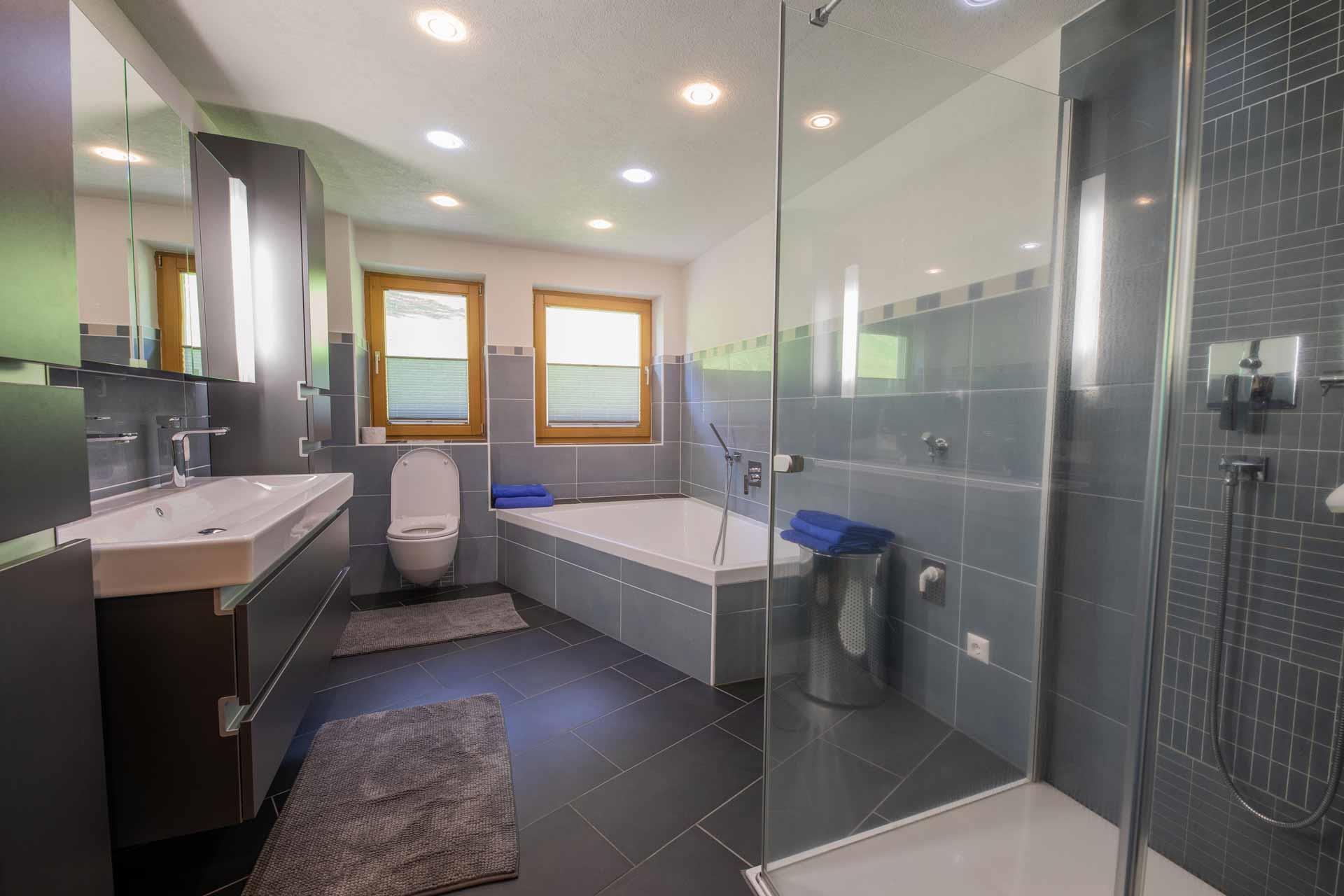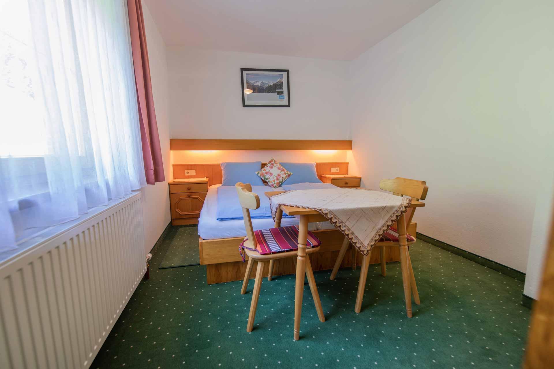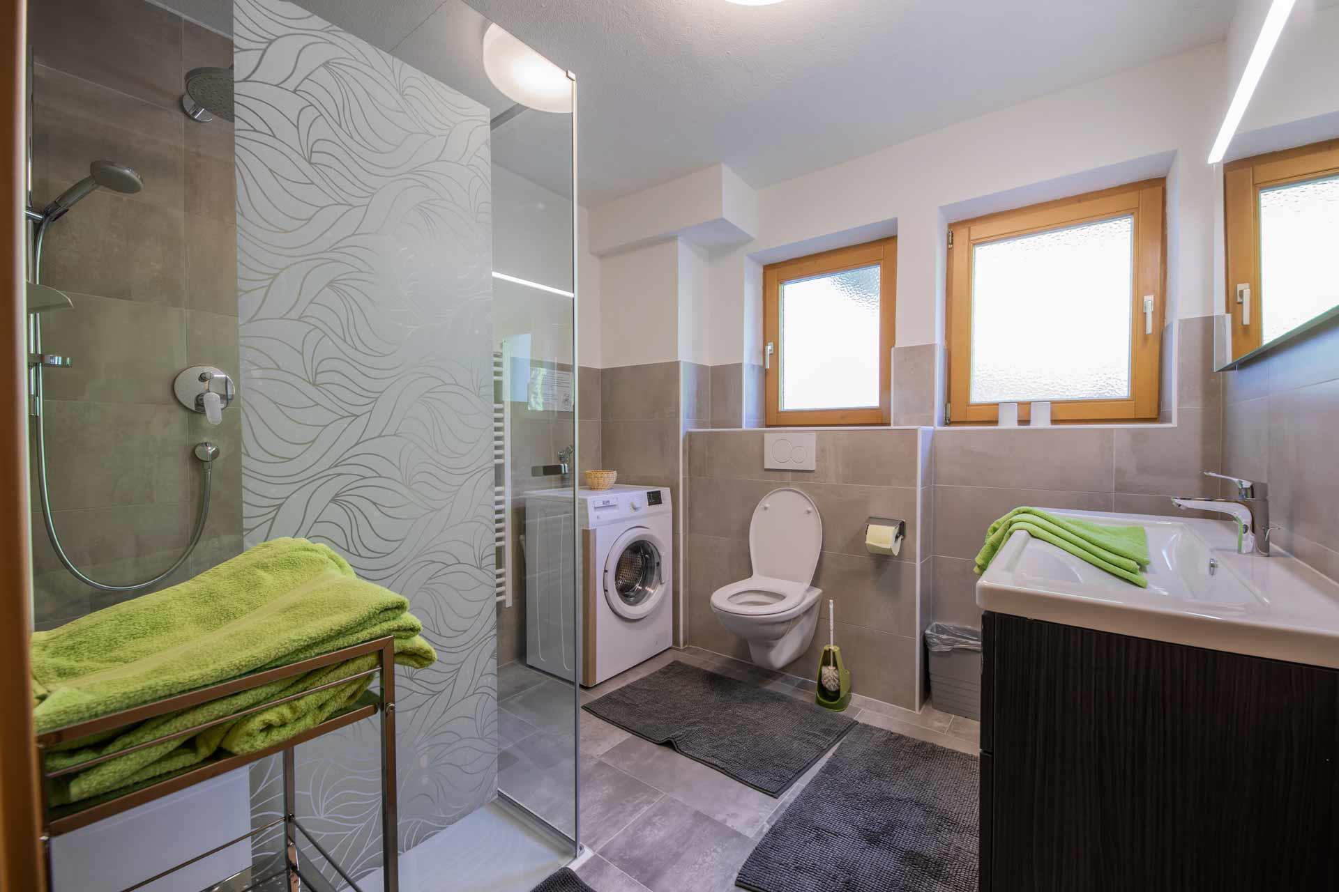 Die kleinere Ferienwohnung verfügt über ein Dreibettzimmer mit Dusche und WC, ein Doppelzimmer mit einem Bad mit Badewanne und separatem WC. Das Besondere an der Ferienwohnung ist eine Tiroler Bauernstube mit Kachelofen, welche zum Verweilen einlädt.
