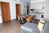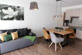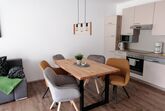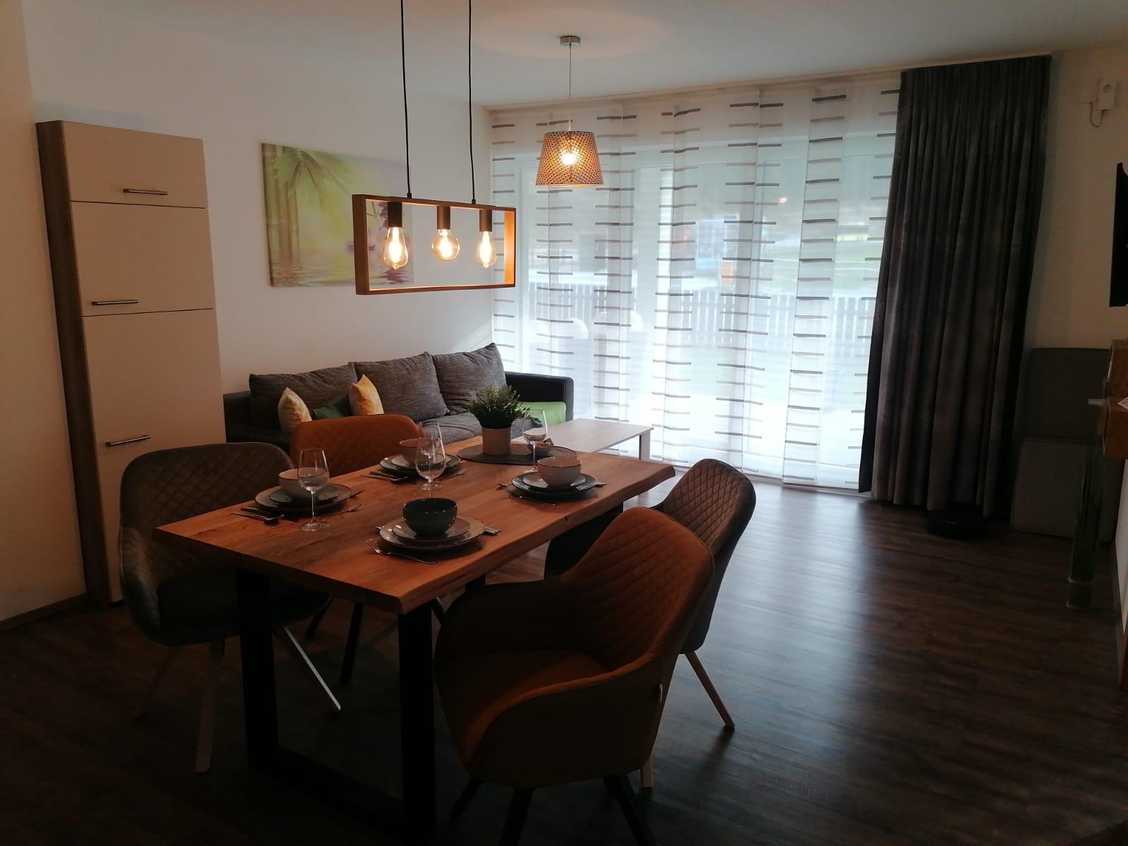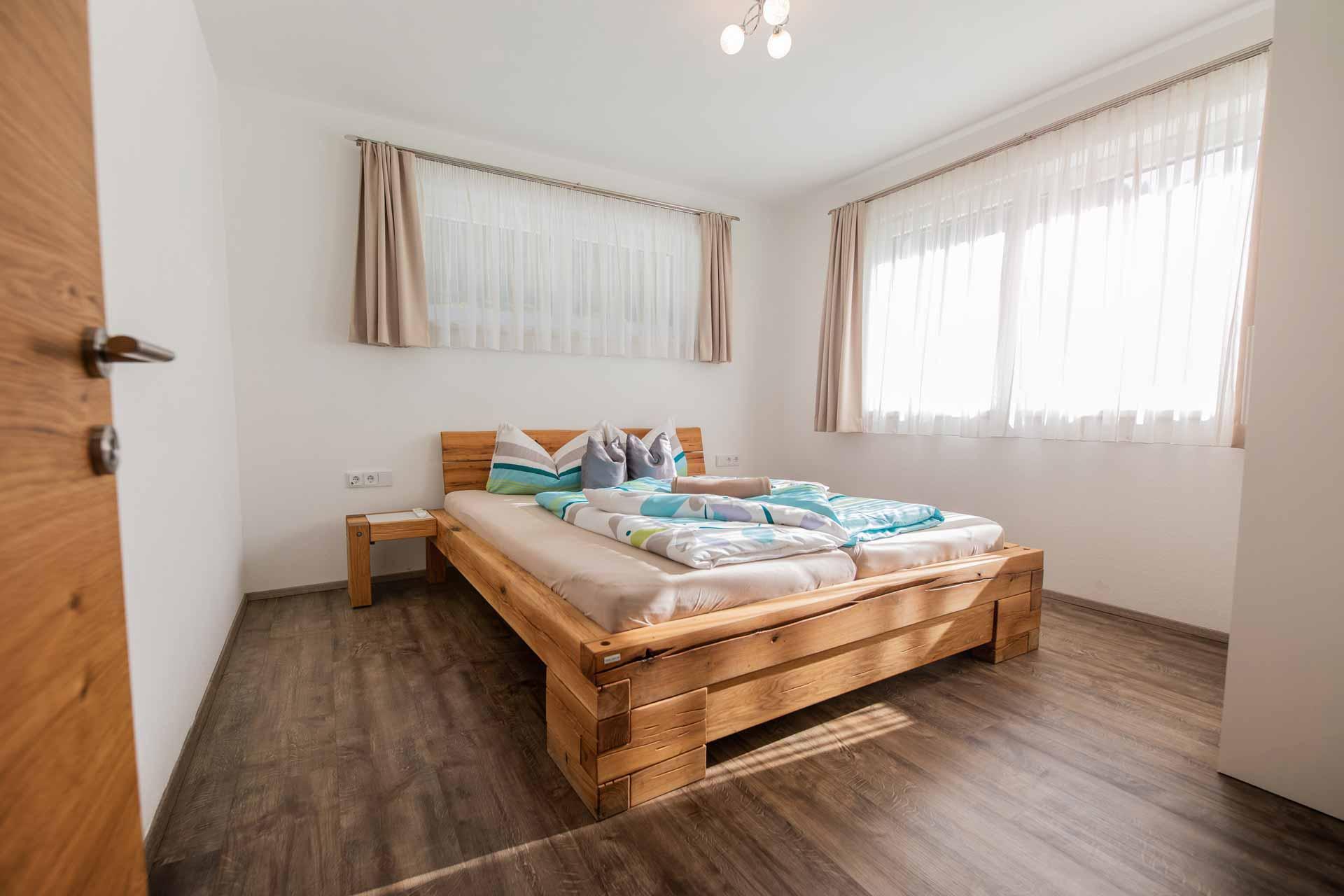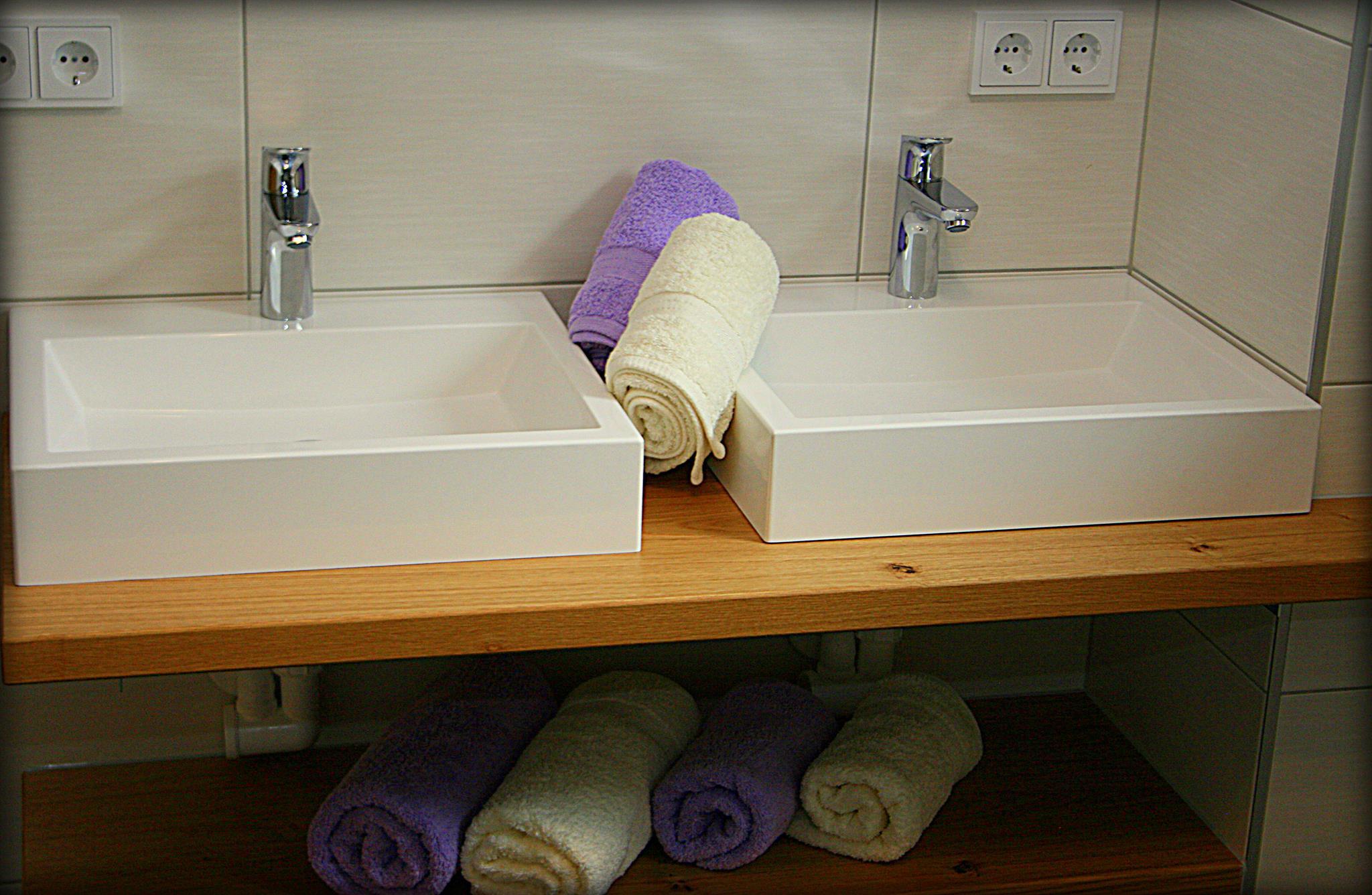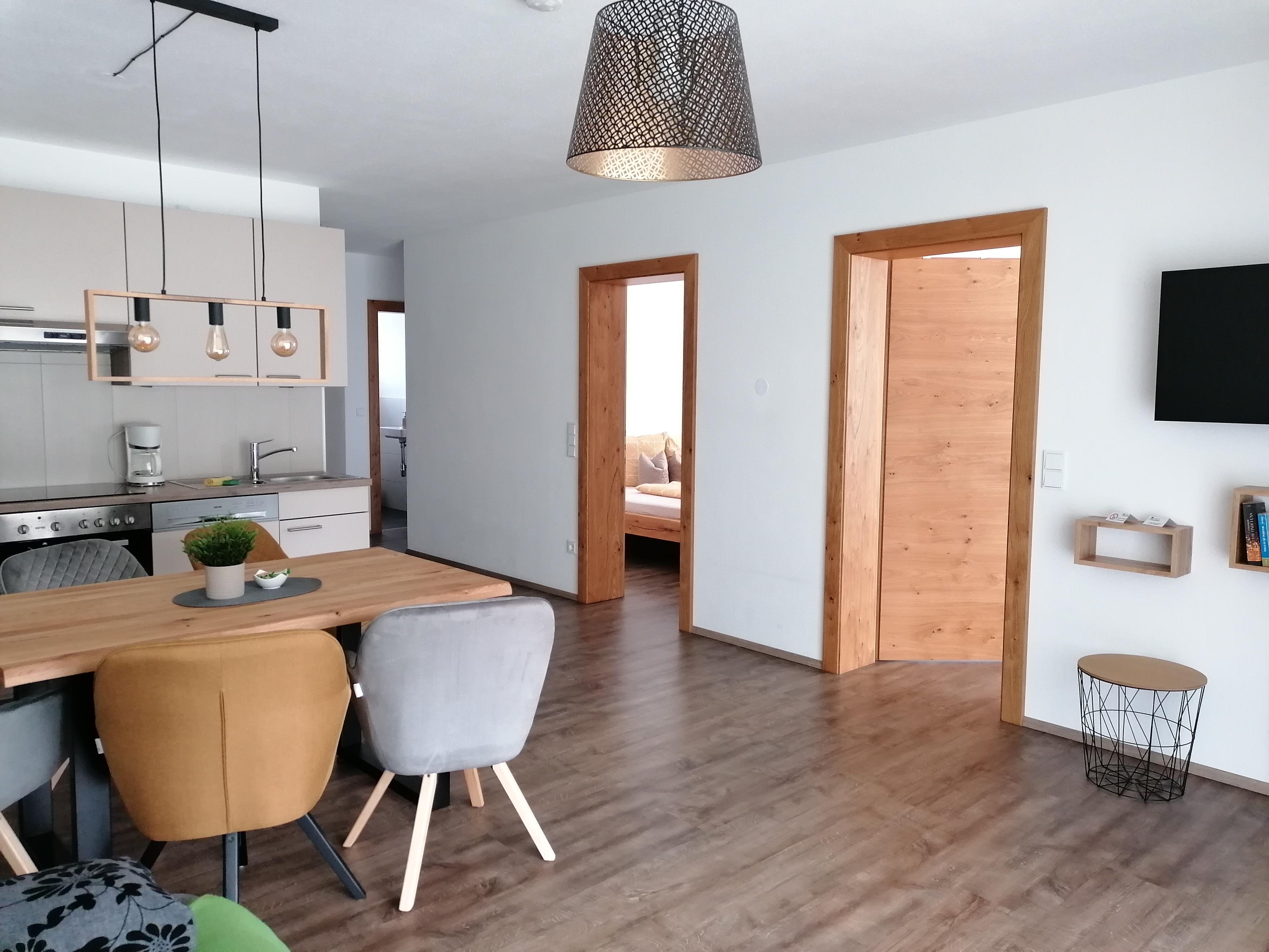 je 66 m², für 2 bis 4 bzw. 6 Personen. Garderobe, zwei separate Schlafzimmer mit Doppelbett aus Eiche-Massivholz (Bettwäsche aus Bio-Baumwolle vorhanden) und je eigenem Flat-TV, Spiegel-Schwebetürschrank, Steckdose mit integriertem USB-Anschluss, Wohnraum mit ausziehbarer Couch (140x200 cm), Flat-TV in HD, Vileda Saugroboter, neuer gemütlicher Essgruppe und voll ausgestatteter Küchenzeile inklusive Mikrowelle, Geschirrspüler, Backofen und Kühlschrank mit Gefrierfach, Filterkaffeemaschine, Wasserkocher, Toaster, Badezimmer mit großzügiger Dusche und Toilette, Doppelwaschbecken und Spiegel inklusive Led-Beleuchtung, Haarfön, Kosmetikspiegel, Handtuchtrockner (Handtücher stehen zur Verfügung), zusätzliche separate Toilette, überdachte Terrasse mit gemütlicher Sitzgelegenheit und gemeinsamer Gartennutzung