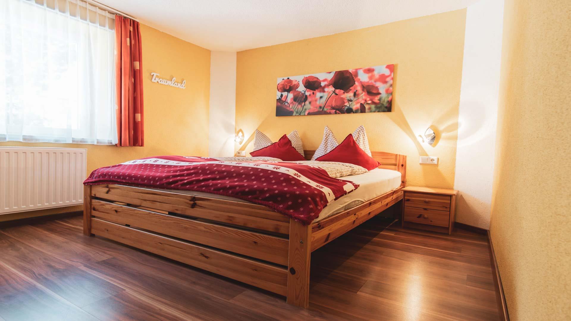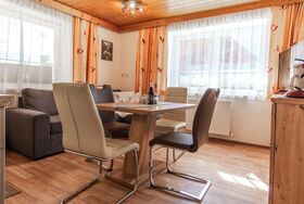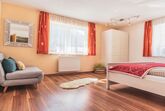 Ferienwohnung - 2 große getrennte Schlafzimmer (1 Doppel - und 1 Dreibettzimmer ), eine gemütliche Wohnküche komplett ausgestattet: Backofen, Geschirrspüler, Mikrowelle, Kühl-Gefrierkombination, Kaffeemaschine (Filter und Tabs), elektr. Wasserkocher, Toaster, genügend Kochutensilien, SAT-TV, Internet (WL), Speisetisch und Sofa- Sitzecke, 1 Bad/WC.