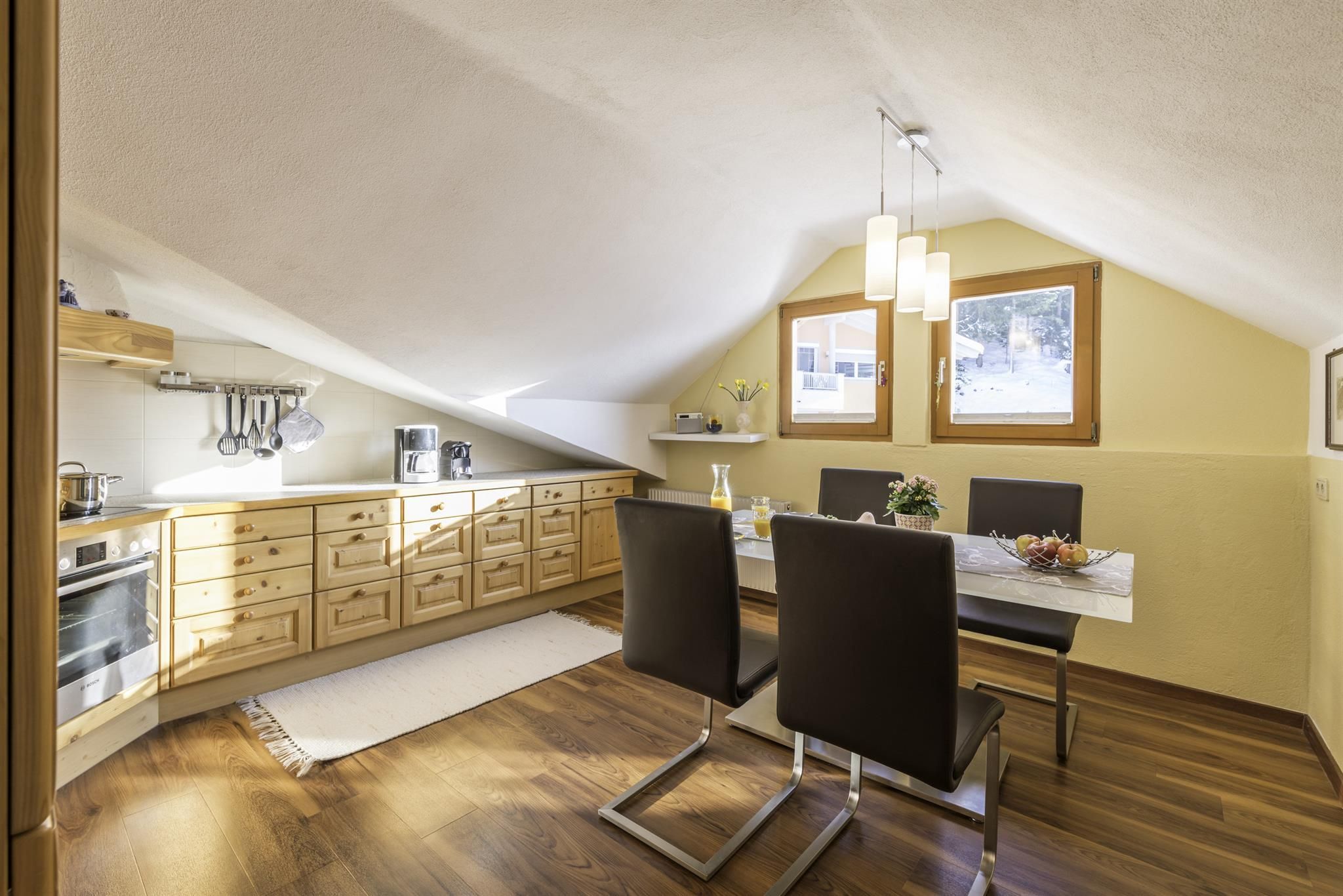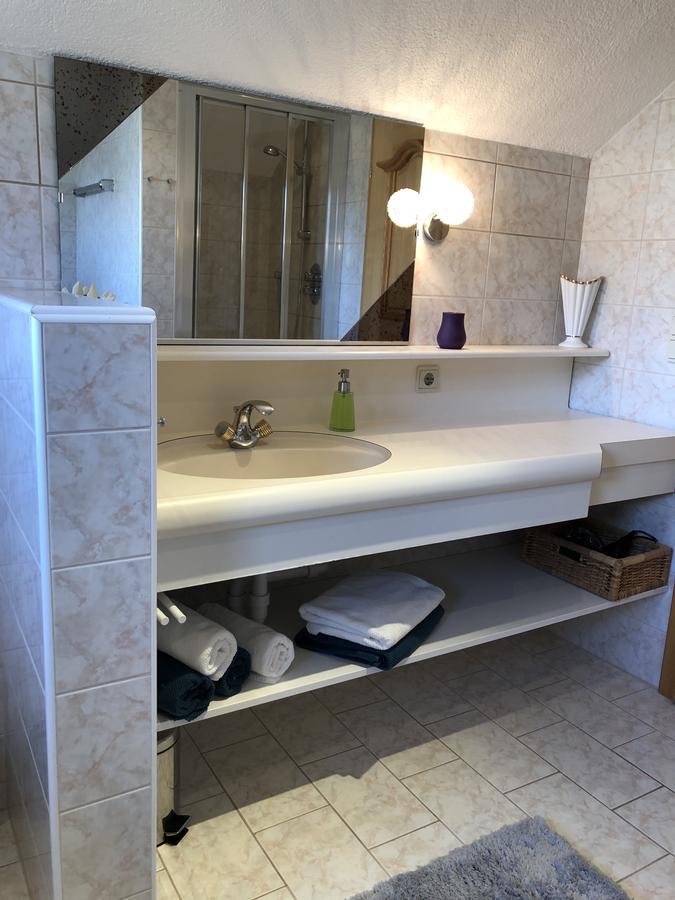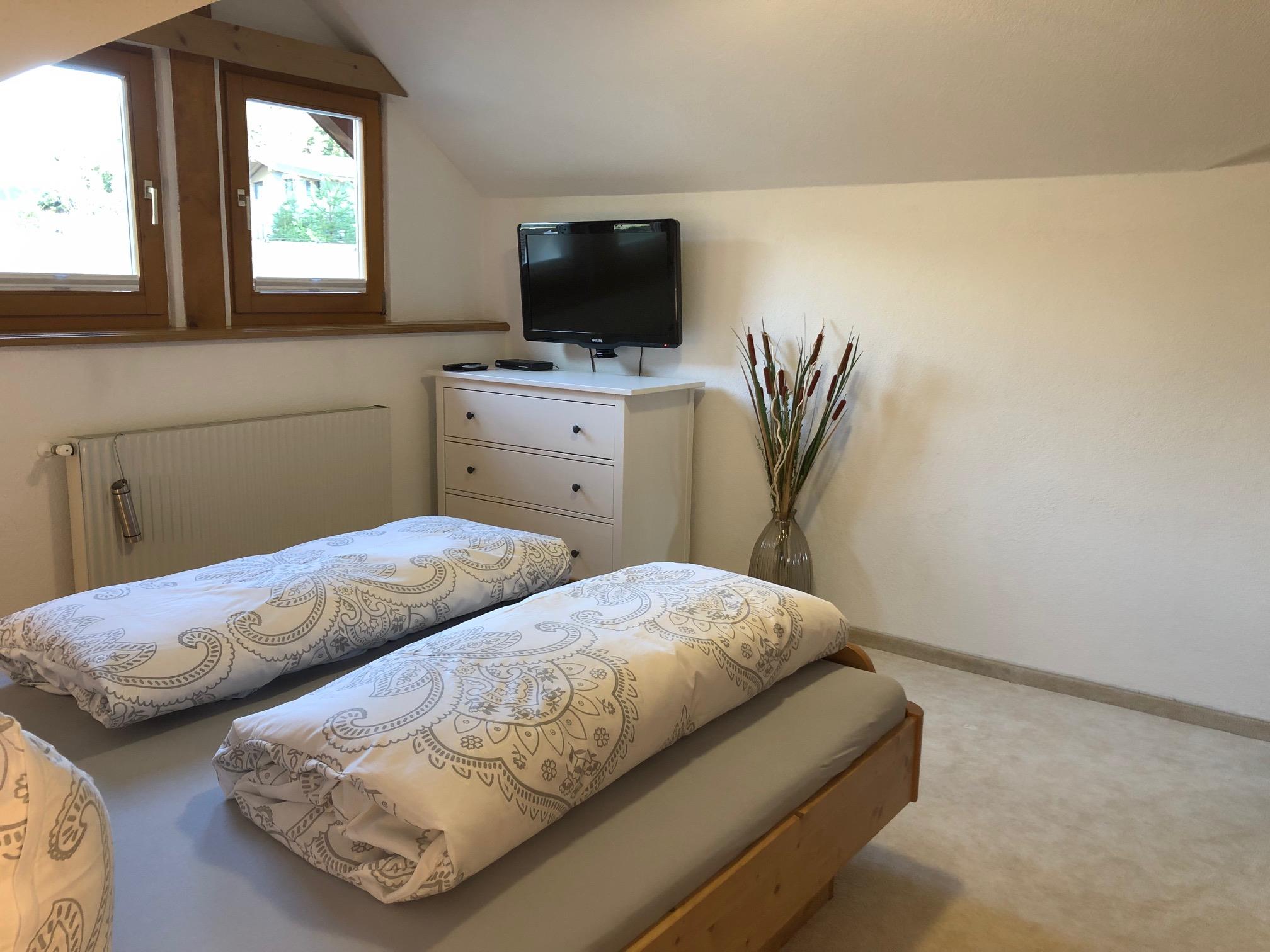 Ca. 73 m2 große, komfortable Ferienwohnung für 2-3 Personen (Dachgeschoßausbau) mit Balkon (herrliche Aussicht, letzte Abendsonne). Die Ferienwohnung besteht aus: 1 Doppelbettzimmer, 1 Wohnzimmer (zusätzl. gute Schlafmöglichkeit für 1 Person) mit Kabel-TV, Internetanschluss (W-Lan), eigener Küche (großer Eßtisch, E-Herd m. Backrohr, Mikrowelle, Geschirrspüler etc.), Badezimmer mit Badewanne, Dusche und WC.